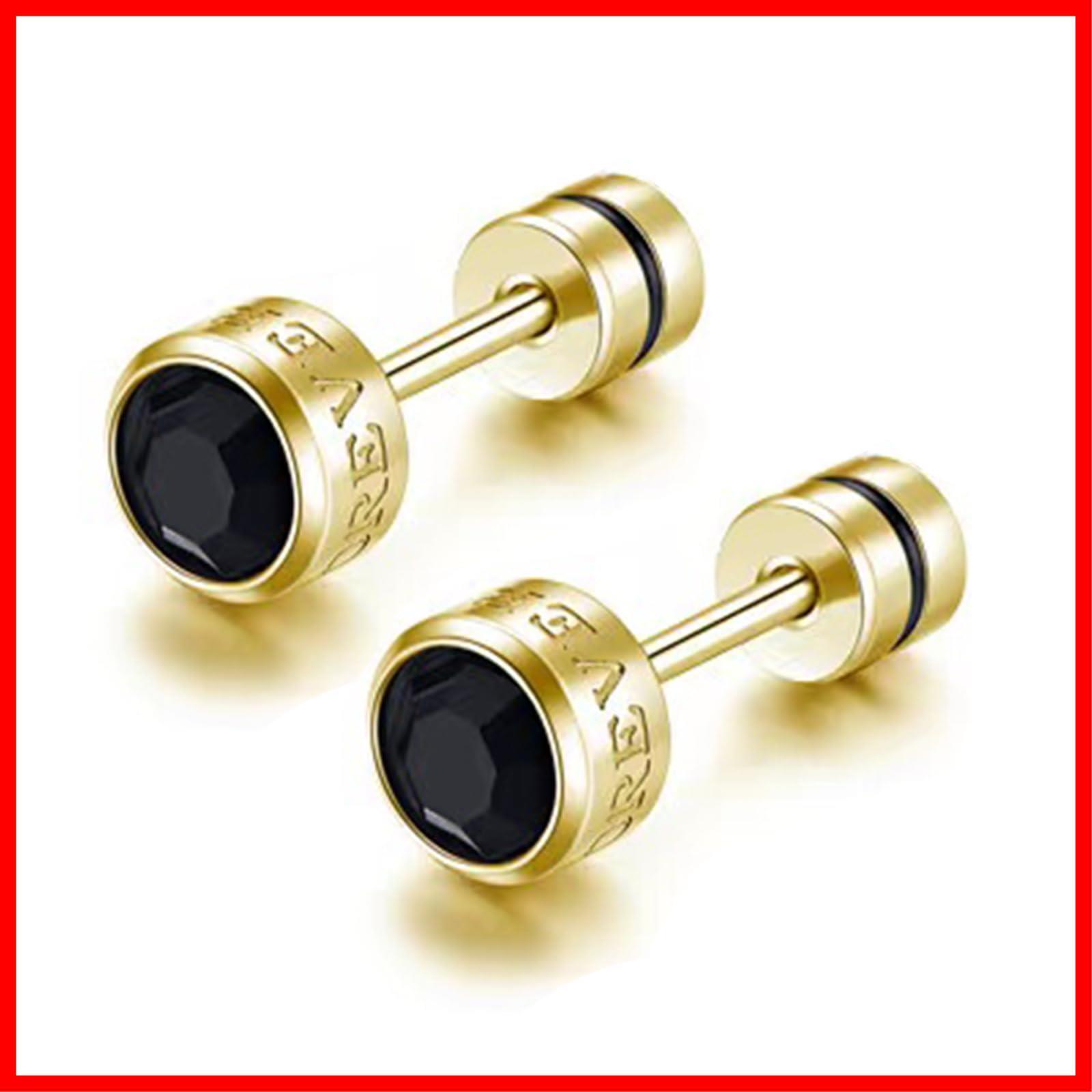 ピアス メンズ シンプル メンズピアス 黒い石 サージカルステンレス スタッドピアス つけっぱなし ネジ式 ジュエリー 男女兼用 両耳用 キャッチ 人気 おしゃれ プレゼント レディース ファーストピアス ブラック 2個セット 5mm (ゴールド)