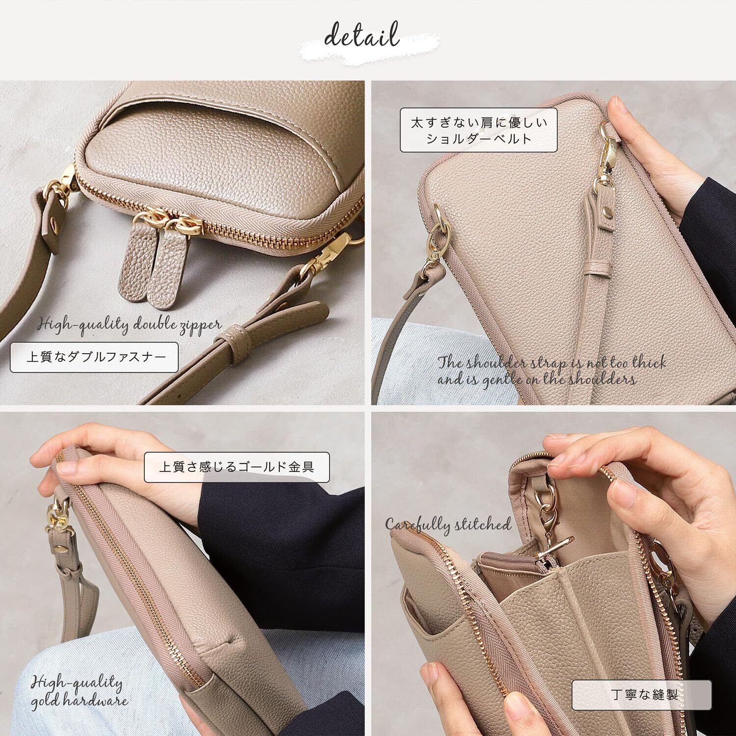 【クラウドファンディングで支援額110万円の大ヒットモデル】 クラファンサイト「 creema springs 」にて、支援額110万円を突破した大ヒットモデルです。よくあるスマホと小物しか入らないスマホショルダーから長財布まで入るちょうどいいサイズに試作品を5つ以上作成し完成しました。小さすぎず、大きすぎないショルダーバッグだから、平日から休日までこれ一つでどこへでもお出かけできます!