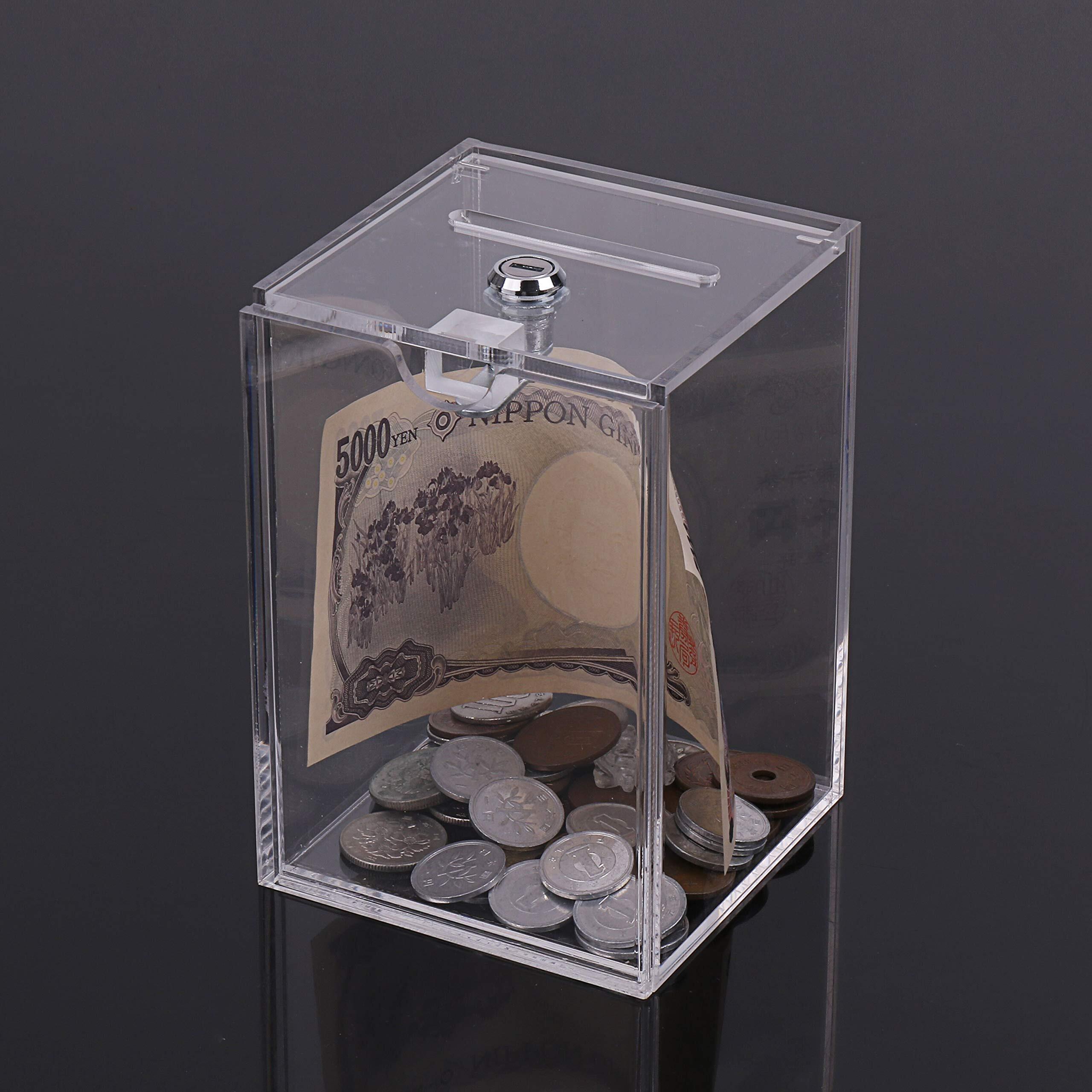 Olive-G 鍵付き 透明 アクリル すっきり スタイル 貯金箱 チャリティー ボックス クリア W90mm