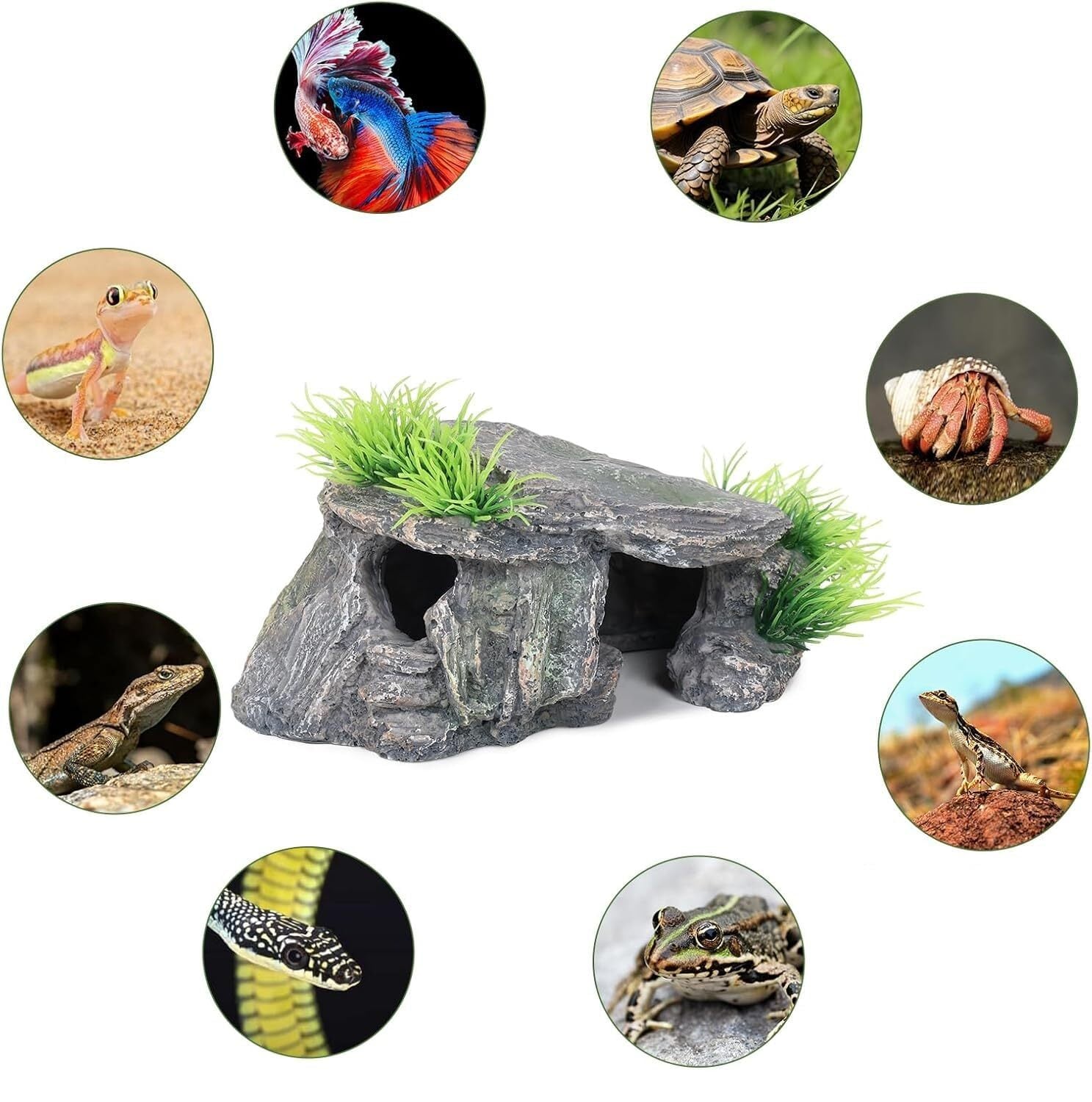 koundeneko 爬虫類 シェルター 亀 隠れ家 カメ隠し 休憩 日光浴 岩 浮島 イモリ/ミガメ/ヒゲ竜/トカゲ/ヘビ/熱帯魚など 両生類 飼育 保湿 爬虫類ケージ用 待避用 洞窟 水槽オブジェ 水槽アクセサリー