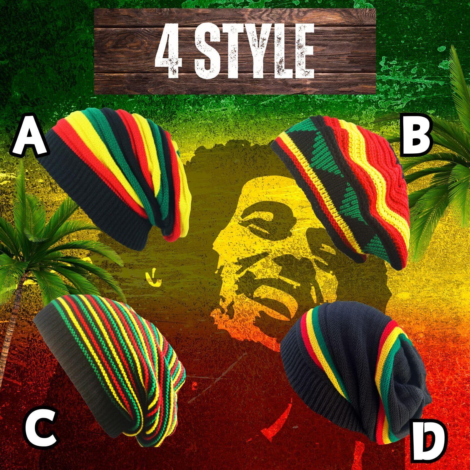 ドレッドヘアやレゲエファッションによく似合う、ラスタからーのご機嫌なニット帽子です。