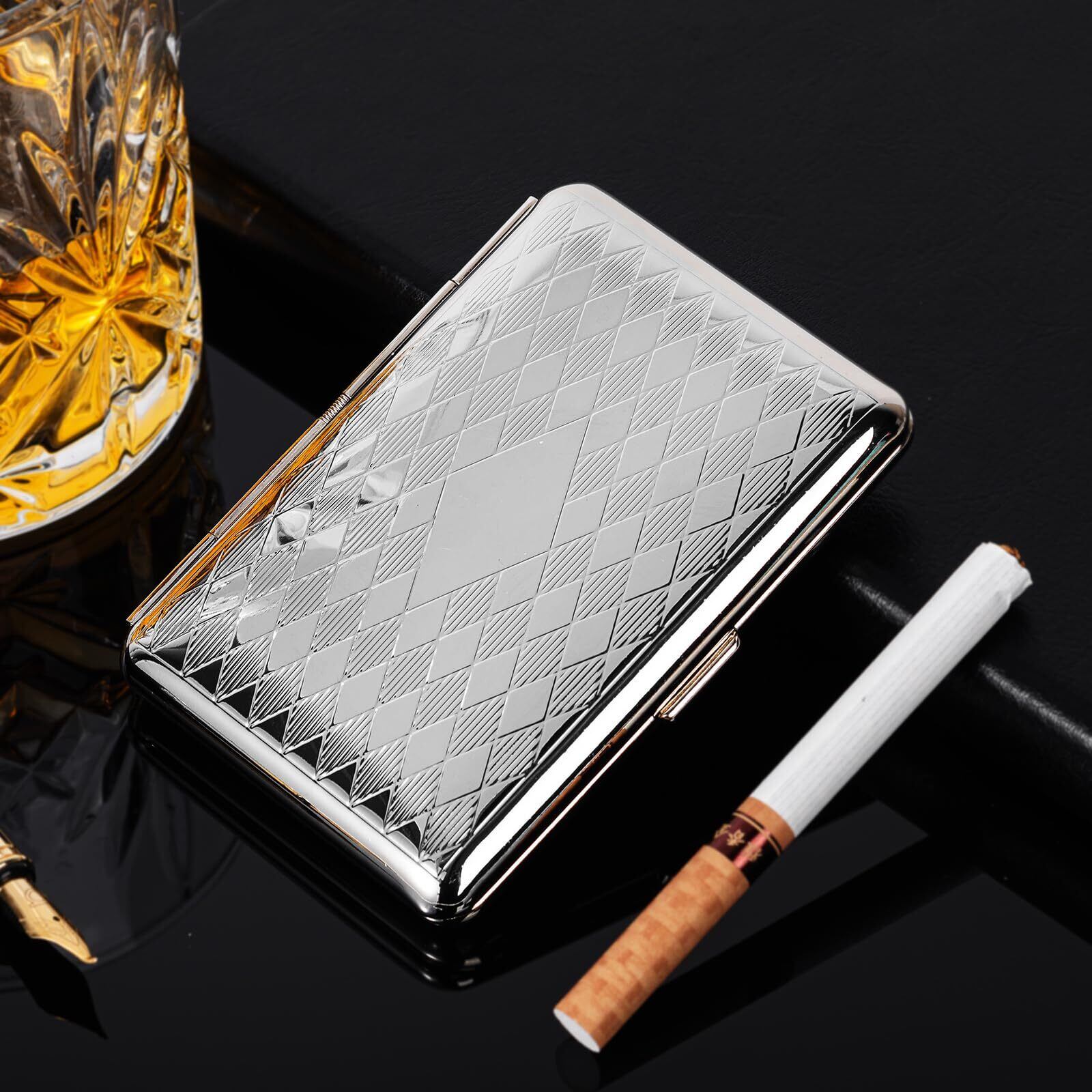 1-当社のメタルシガレットケースは、キングサイズまたは長さ85mmのタバコに合うように設計されており、短いタバコを好む方に最適です。寸法は93.5mm x 68mm x 18.5mm、重量はわずか2.3ozで、ポケットやバッグに簡単に入れることができます。