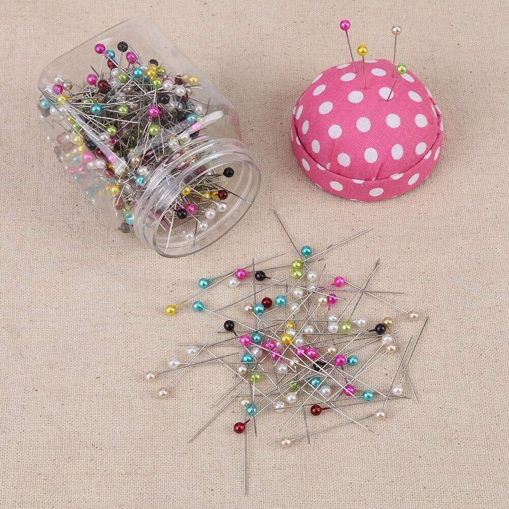 【多機能ビーズピンとピンクッション】ボトルには500個のカラフルなビーズピンが含まれており、とても見た目も美しいです。これらのピンは、ボトルのキャップに取り付けられたピンクッションに挿すことができます。ピンクッションは赤い布で覆われており、白い点が美しく、かわいらしいデザインになっています。