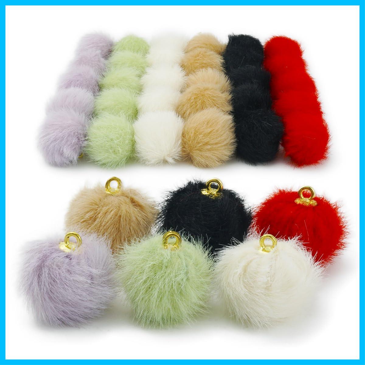 ファーボール カン付き 16mm 6色36個セット アイボリー アクセサリーパーツ (ブラック・レッド・パープル・グリーン・ブラウン)