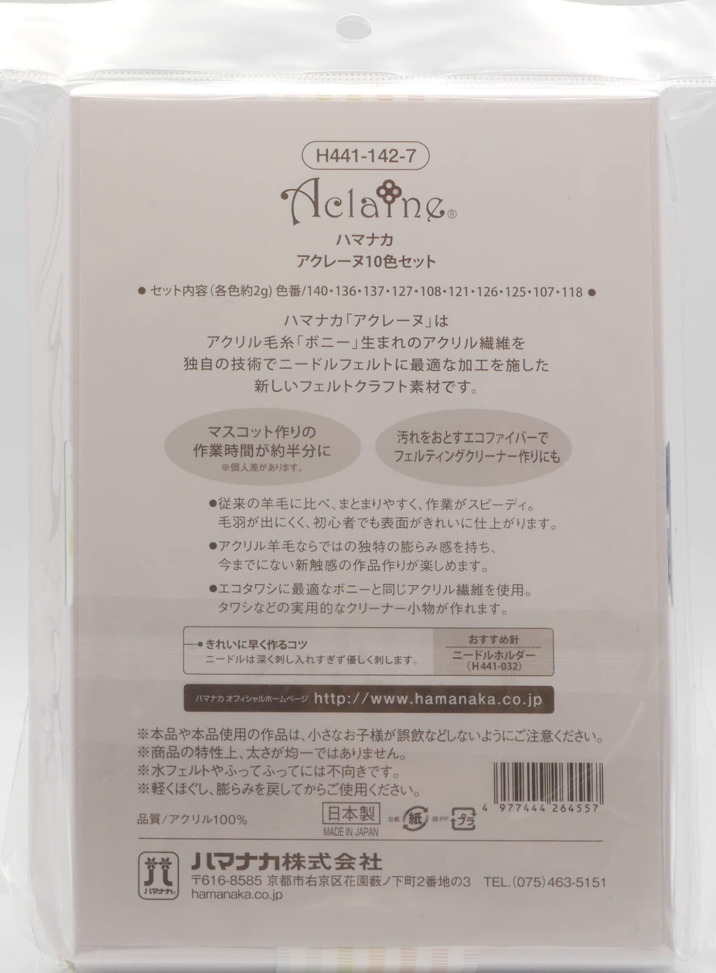 ハマナカ 羊毛フェルト アクレーヌ 10色セット 各色約2g入り 青系・緑系 H441-142-7