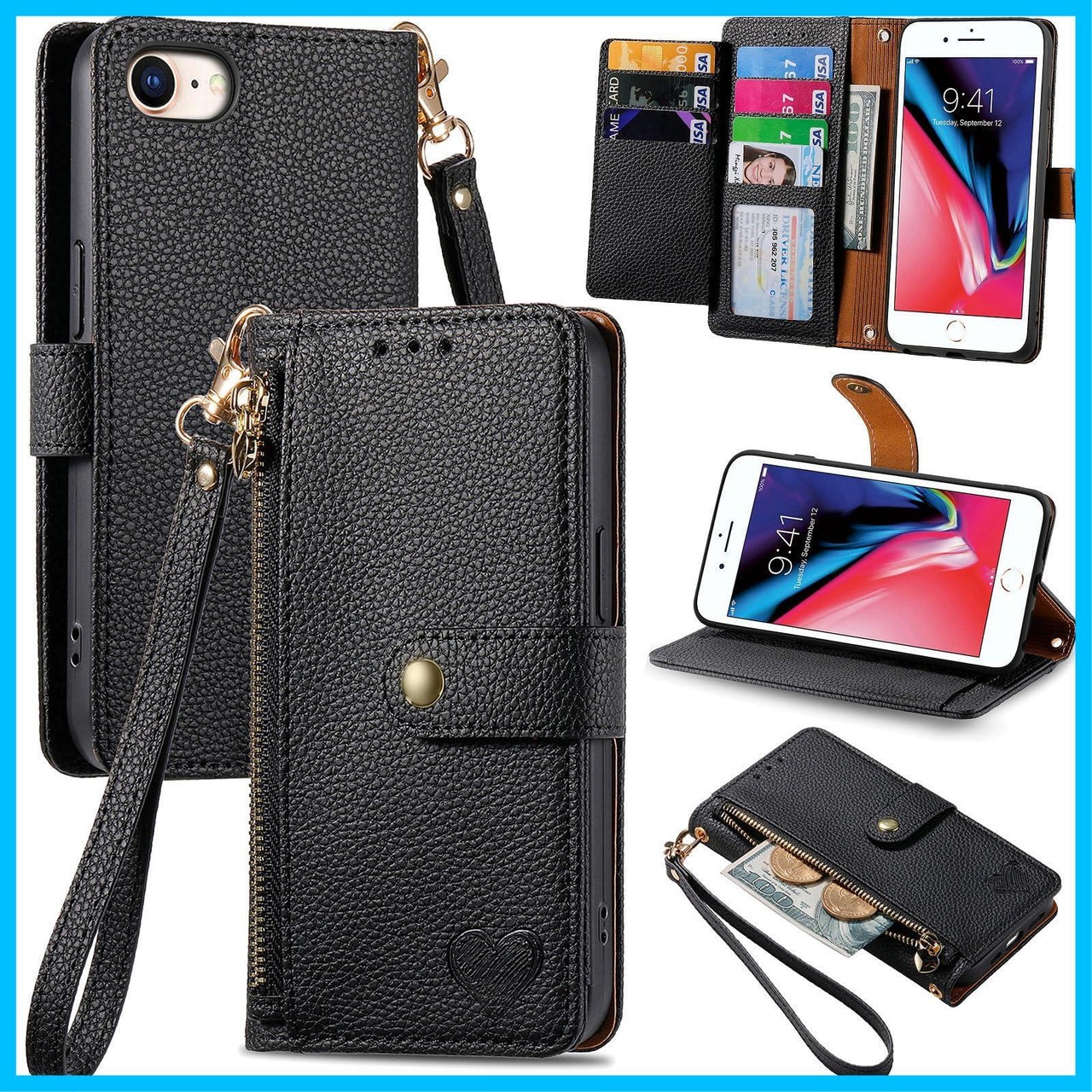 に適用するiPhone SE 第3世代 (2022) / iPhone SE 第2世代 (2020) / iPhone8 / iPhone7 ケース 手帳型 ノートブック型ビジネスフォンケース Rfid携帯電話保護カバー強い吸引力ノートブック型多機能ホルスター財布ホルダーバンプパターンテクスチャ耐久性摩擦耐性 (黒)