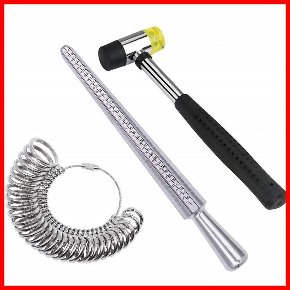 日本規格リングサイズ3点セット 指輪サイズゲージ リングゲージ リング棒 ハンマー まで対応 日本標準規格 指輪 サイズ 調整 プロ仕様 指輪測定用 補修ツール ジュエリー用 工具 道具 (リング定規セット)