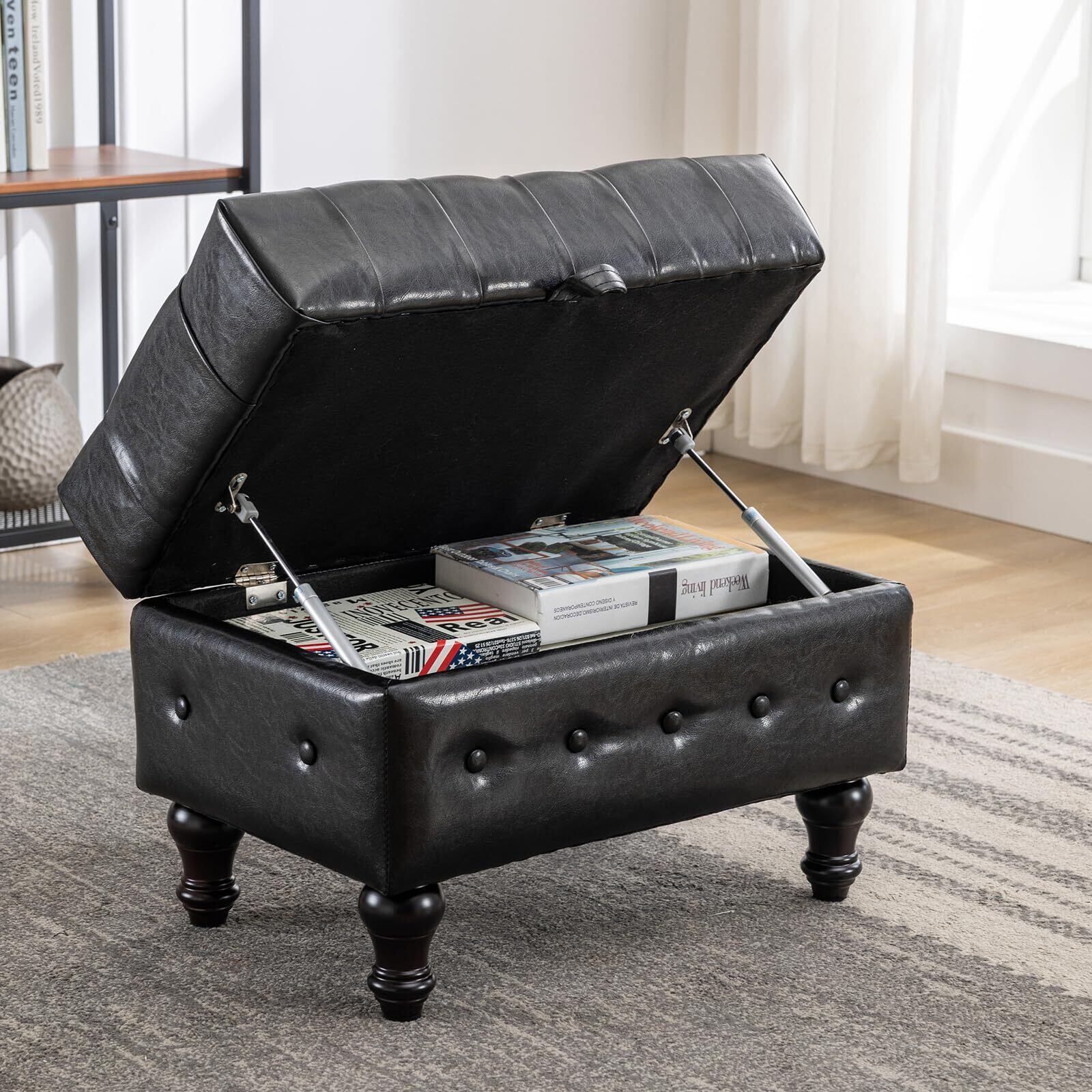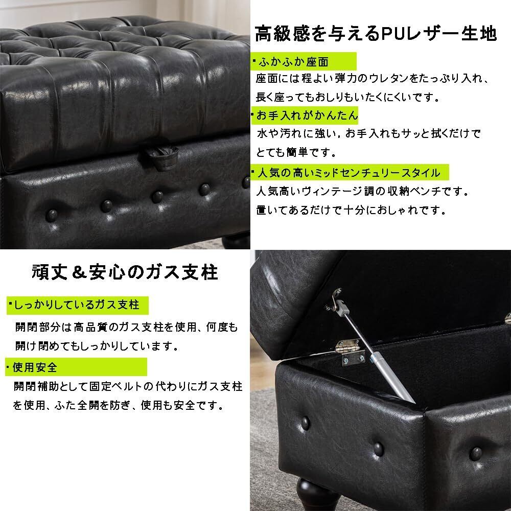 Altrobene 収納スツール 大容量収納 収納ベンチ PUレザー 足置き 収納ボックス 収納付き 小物収納 衣類収納 スツール リビング 玄関 寝室適用 脚付き オットマン ブラック