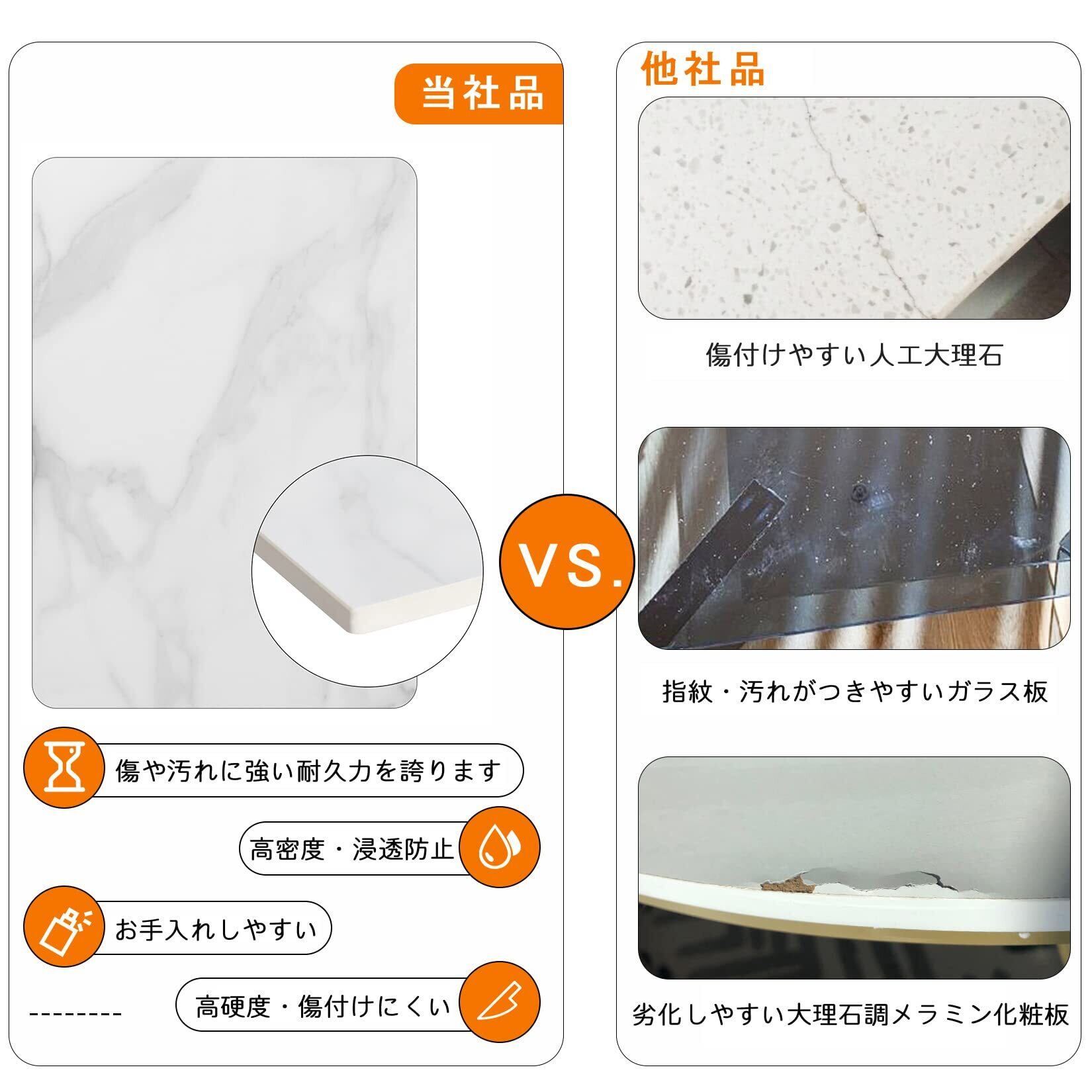 【傷付にくい天板】10mmの厚い大理石板はモース硬度7(水晶と同じくらいの硬さです)で、傷付けにくくて耐熱性が良好な素材です。汚染物質なども付着しにくく、衝撃や傷にも強いため、お手入れもしやすいです