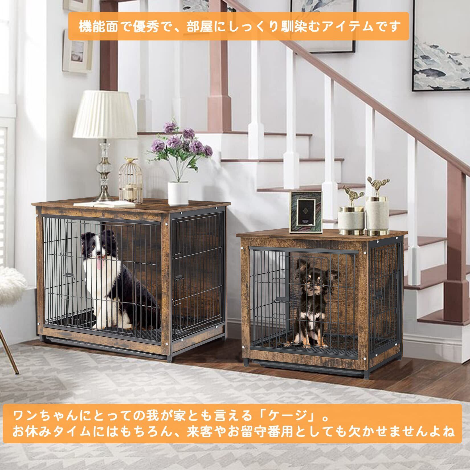 【ちょうどよいサイズ感】63cmx48.5cmx高さ59cmの大きめの設計で、10kg以下の犬にも対応できます。長時間ケージの中で過ごすことが多い場合は、犬が窮屈そうにしなくて少し広いサイズのほうが安心です
