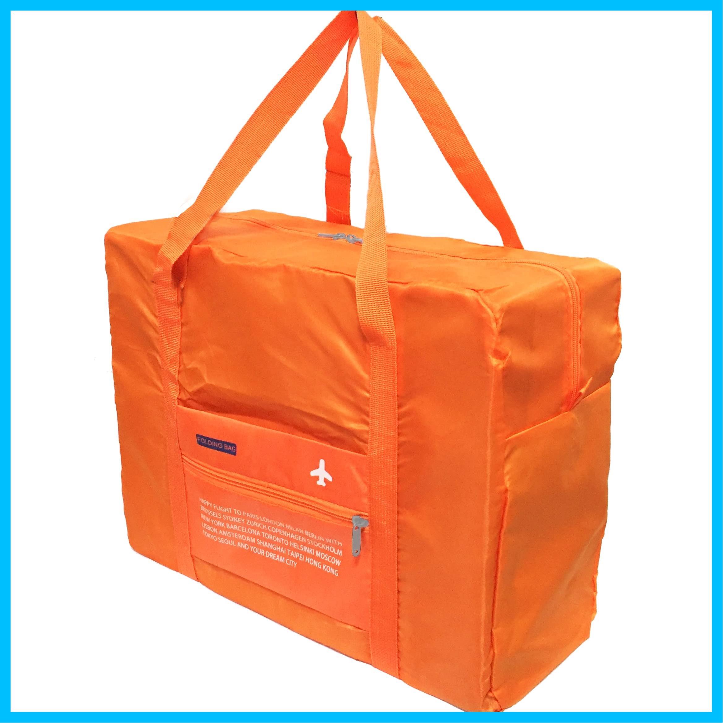 折りたたみ ボストンバッグ 収納ポーチ付 大容量 機内持込サイズ スーツケース固定可 キャリーオンバッグ (ALLオレンジ)