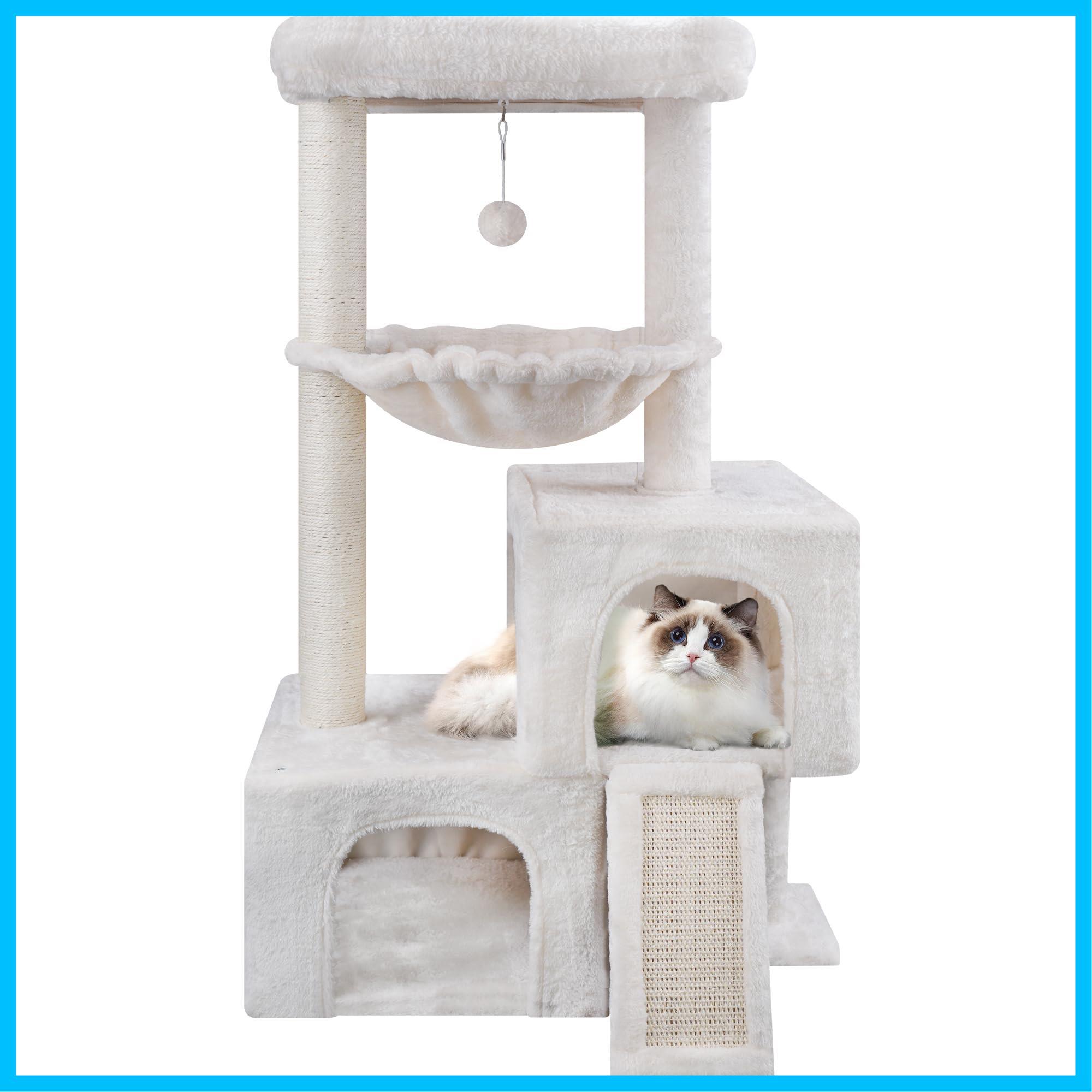 Roypet キャットタワー 猫タワー 据え置き ハンモック 隠れ家 猫ハウス 省スペース 爪とぎ 麻縄巻き 安定 95CM高さ おもちゃつき (ベージュ)
