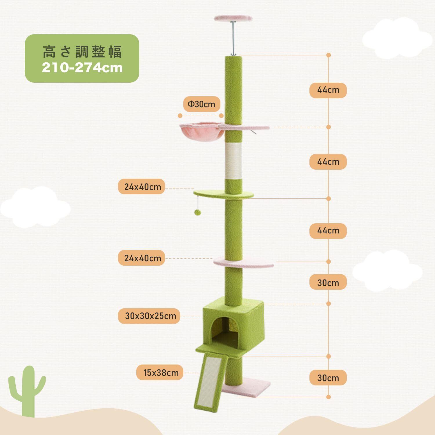 PETEPELA(ぺテぺラ) キャットタワー 突っ張り スリム 猫タワー 花 ハンモック 爪研ぎ 天然サイザル麻 隠れ家 大型 多頭飼い 省スペース コンパクト ポンポン おもちゃ カラフル シンプル かわいい 人気 - グレー 高さ調整幅210~274cm
