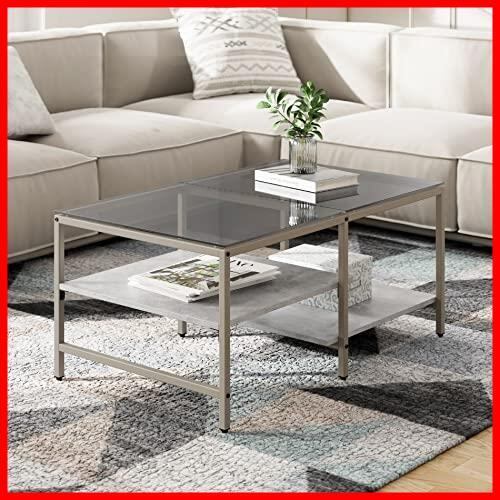 HOMOOI ローテーブル センターテーブル ガラステーブル 二段収納 強化ガラス 収納付き おしゃれ リビング 一人暮らし 幅100×奥行60×高さ45cm 岩グレー