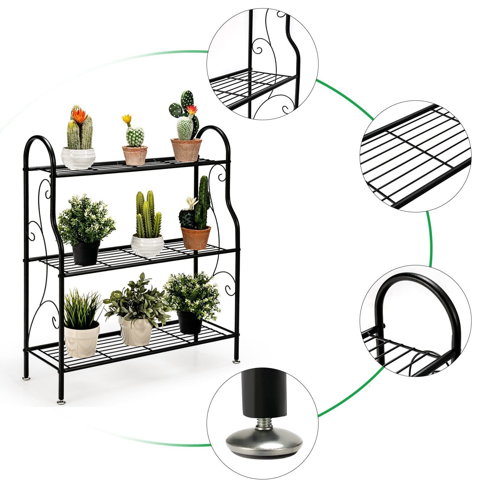 TANGKULA ガーデンラック フラワースタンド 3段 鉄 プランタースタンド 盆栽棚 植物棚 園芸ラック 花台 鉢植え スタンド 多機能収納ラック ガーデン用品 屋外 室内 大容量 おしゃれ 防サビ (3段-3610)