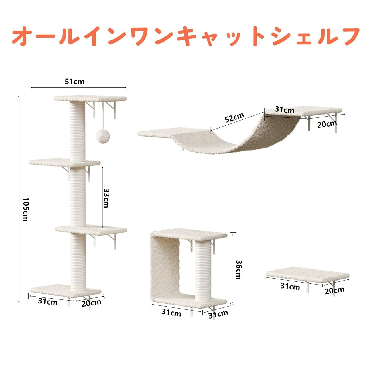 1つですべての機能 - この壁掛け式猫用家具セットには、キャットブリッジ、キャットウォールベッド、猫用爪とぎポスト、キャットシェルフが含まれており、あなたの猫がそれらの場所で寝たり、ジャンプしたり、引っ掻いたり、遊んだりできます。このセット1つでさまざまな需要のすべてに対応可能です。また、さまざまな動線に合わせて独自の猫用ジャングルジムをDIYすることもでき、あなたにとっても猫にとっても無数の楽しさを生み出すことが可能です。