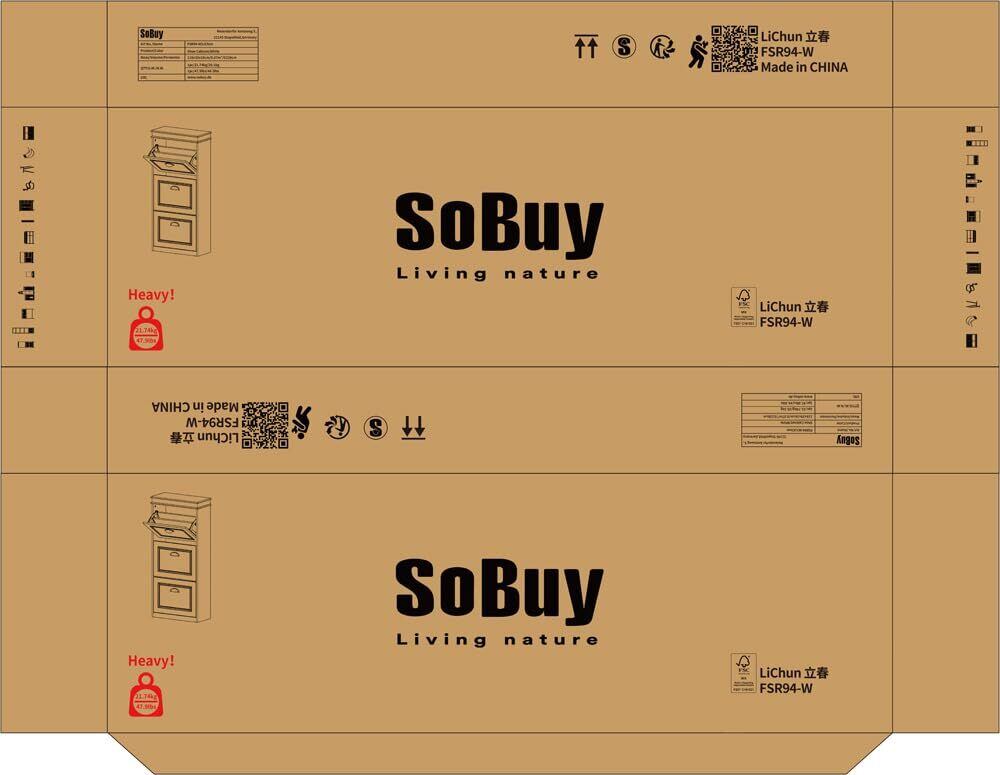 SoBuy 靴箱 スリム 薄型 下駄箱 シューズボックス シューズラック 省スペース 大容量 幅53x奥行24x高さ117cm 靴棚 玄関 靴収納 靴置き shoe rack 靴入れ 棚(FSR94-W)