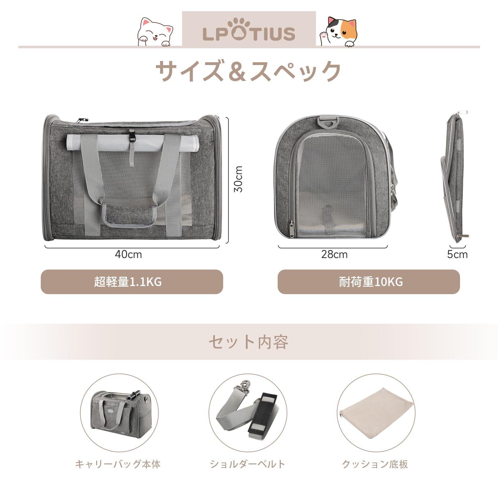 LPOTIUS ペットキャリー バッグ 折り畳み 2way 猫 小型犬 キャリーバッグ 軽量 3面通気 洗える 猫 キャリー 犬用キャリーバック 飛び出し防止リード付き ペット用 キャリーケース ベルト脱着可能 お出かけ 車載 旅行 通院 電車移動 災害避難に最適 耐荷重8KG (グレー)