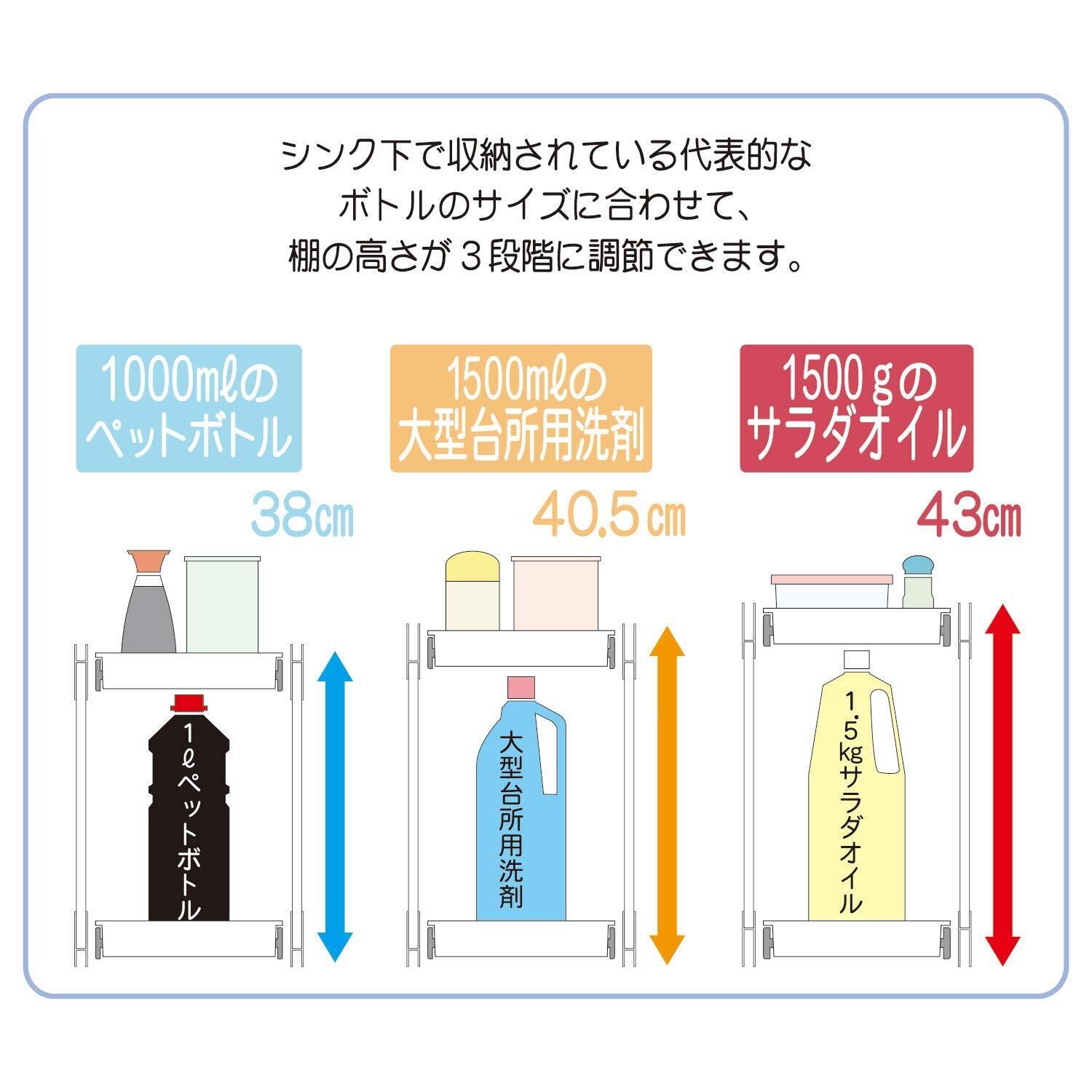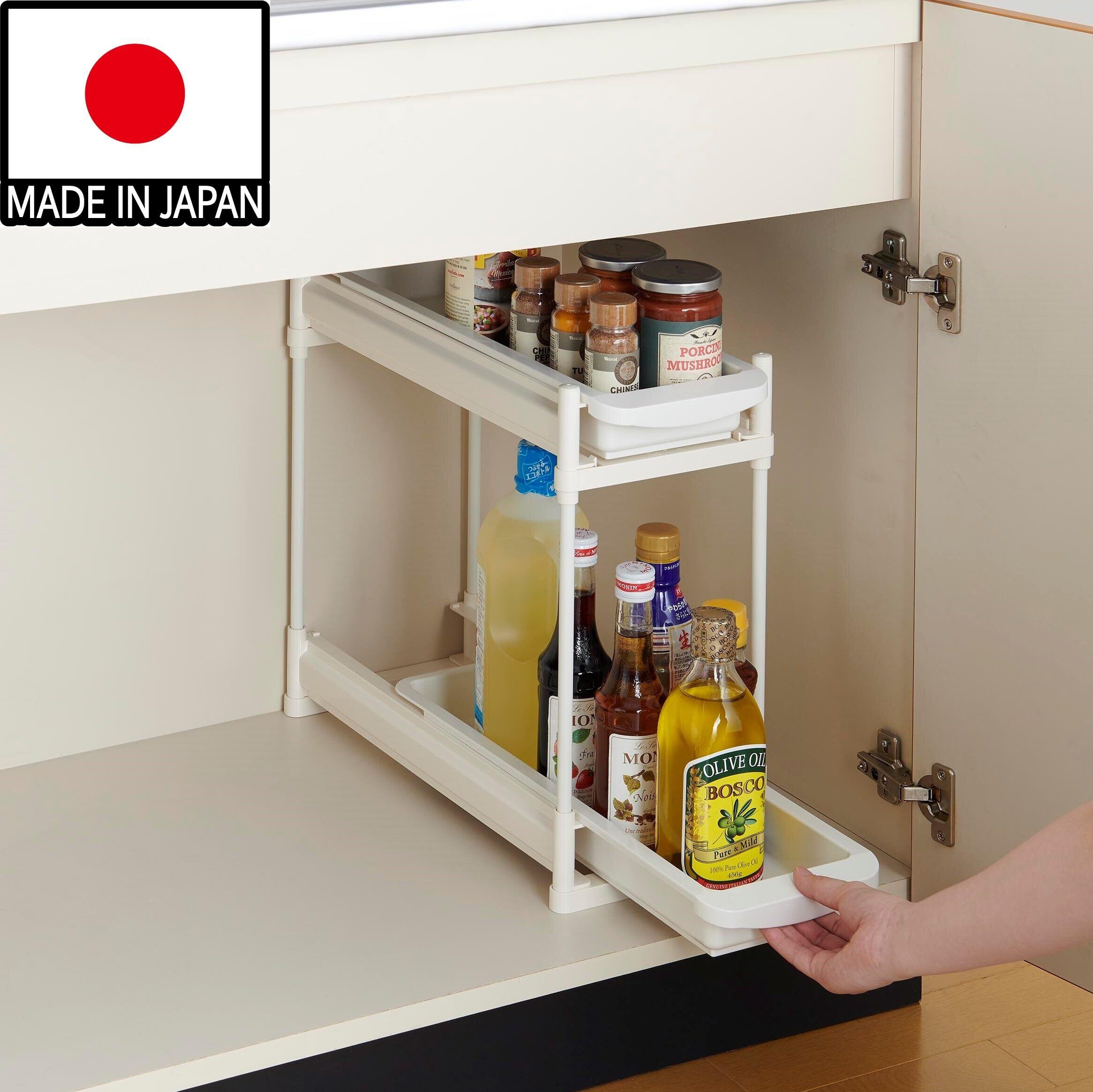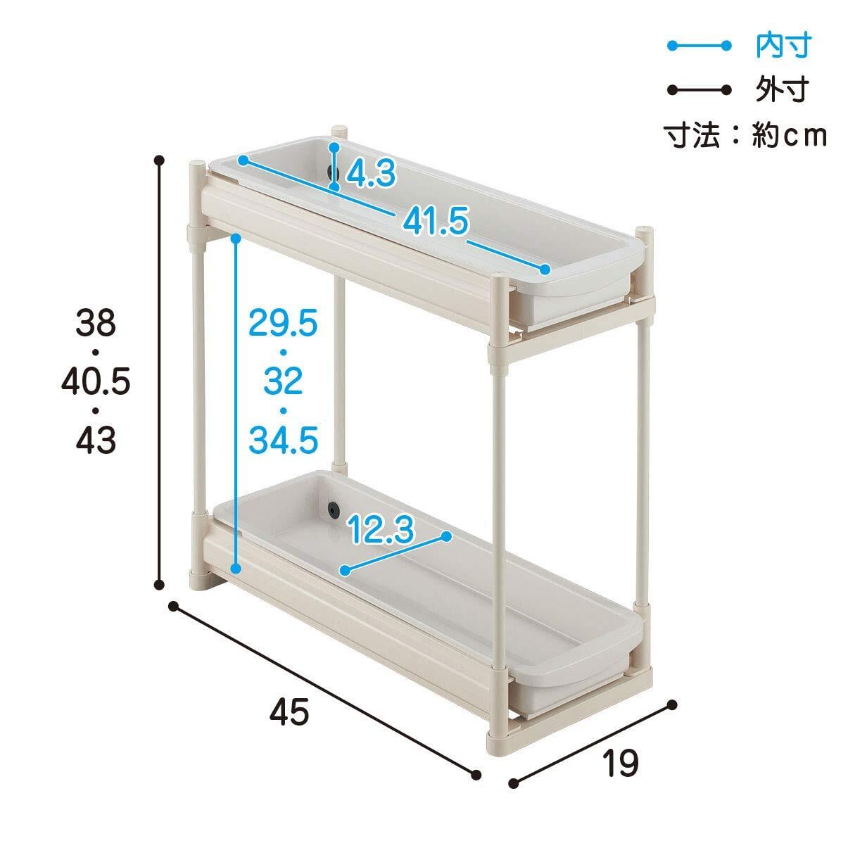 Belca 日本製 キッチン収納 シンク下スライドラック 2段 スリムタイプ 幅19×奥行45×高さ38・40.5・43cm ホワイト キャスター付き SS-304