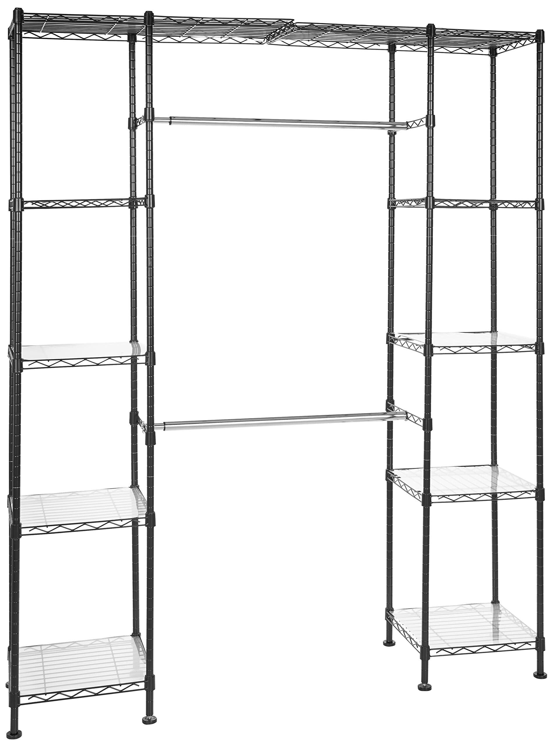 ベーシック ハンガー ラック ワードローブ 収納 延長可能 押入れ 棚付き 2段 頑丈 144.8-203.2x 35.6x 182.9cm ブラック