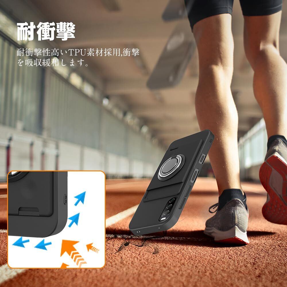 Xperia 10 III ケース Xperia SO-52B ケース SOG04 リング付き シリコン 背面 カード収納 エクスペリア10III スマホケース スタンド機能 360°回転リング 耐久 滑り止め 黑