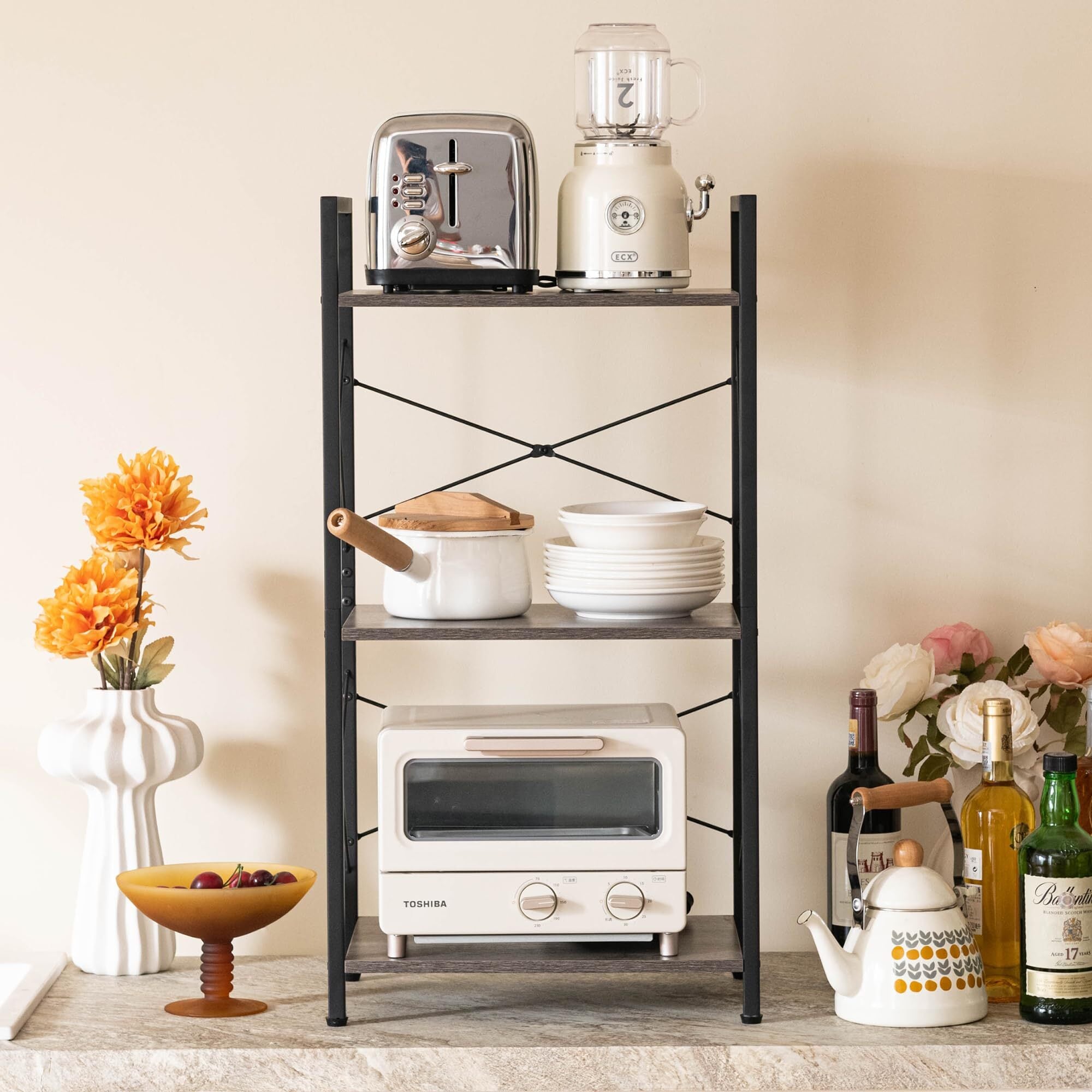 【多機能棚ラック】様々な場所で適用し、スペースの限られたバルコニーにも置きやすい3段式らっく。レンジラック、食器収納、玄関棚、絵本棚、書類棚、漫画棚、雑誌ラック、本収納棚などとして使用することができます。サイズ:幅(42) ×奥行 (28)×高さ(80) cm。