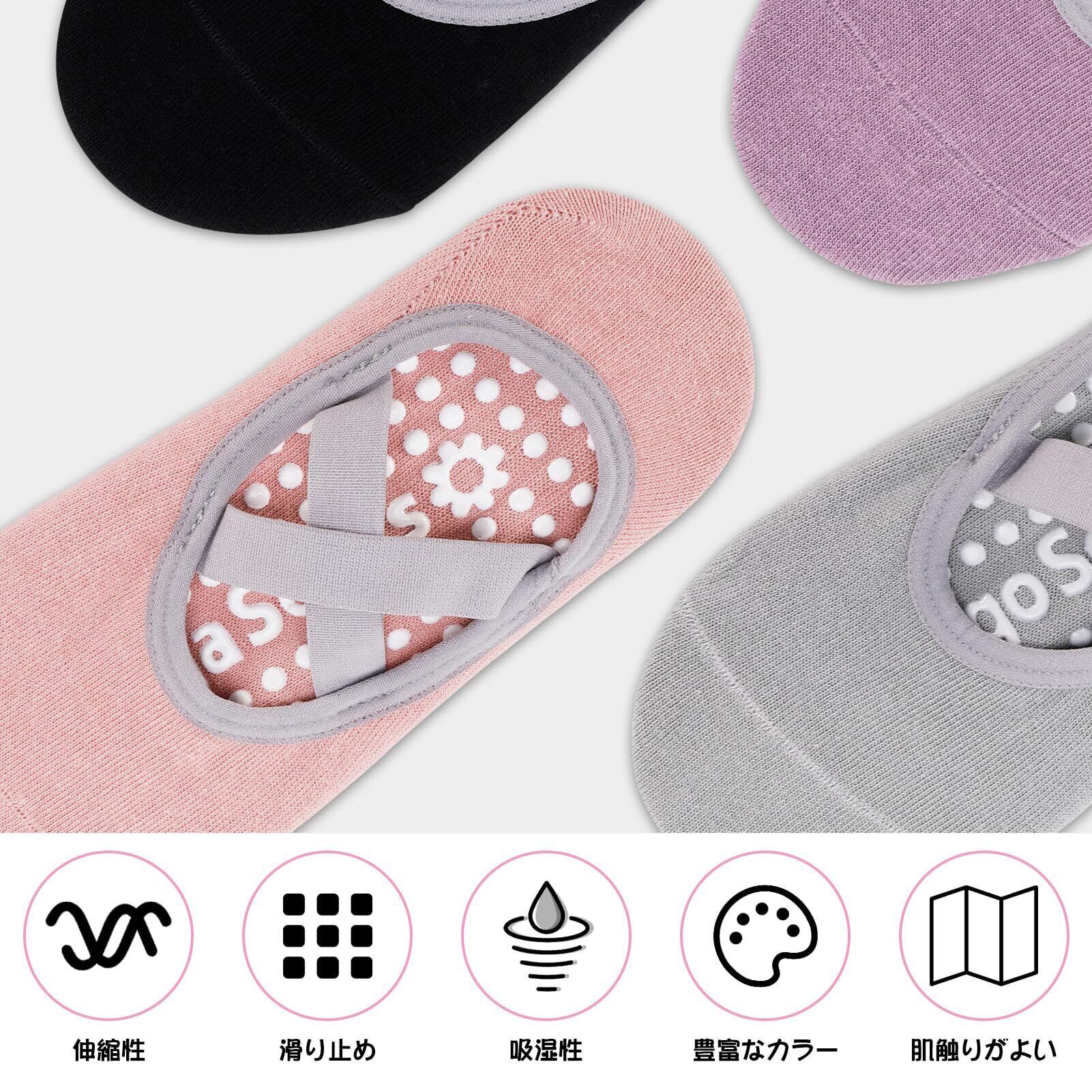 【セット内容】ヨガソックス:4色4足セット、カラー:グレー、ブラック、ピンク、紫、サイズ:フリーサイズ(約22.5cm-26cm、ほとんどの女性に適します。)