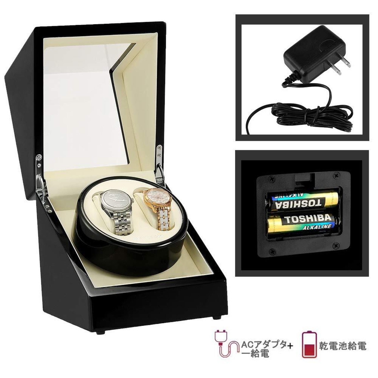 ワインディングマシーン ウォッチワインダー ワインダー 腕時計 自動巻き時計ワインディングマシーン 日本製 マブチモーター 腕時計自動巻き上げ機 収納ケース 2本巻き (ブラック ピアノ鏡面仕上-113BW)