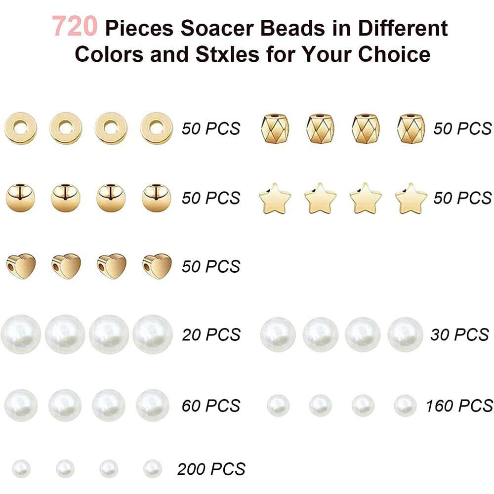 ビーズ 手芸 ビーズ DIY用 ラウンド ハンドメイド パーツ スペーサー 丸玉 ブレスレット パーツ パールビーズ 穴付き 約720個