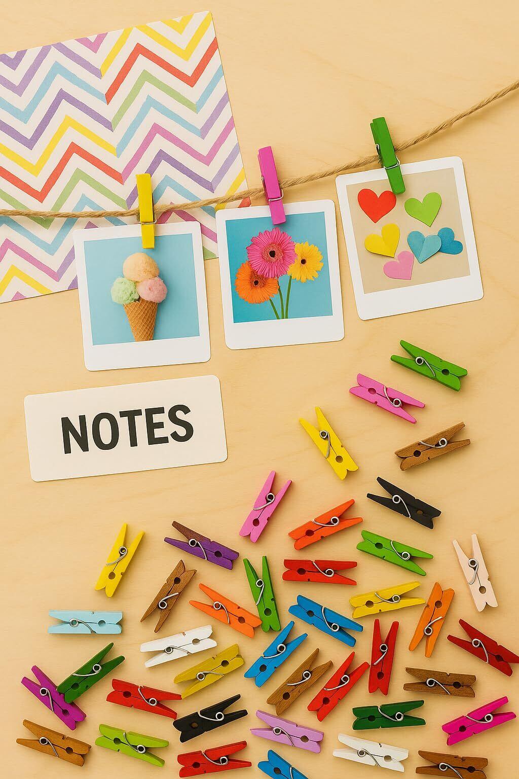 洗濯バサミは、カラー塗装仕上げで、天然木で作られています。