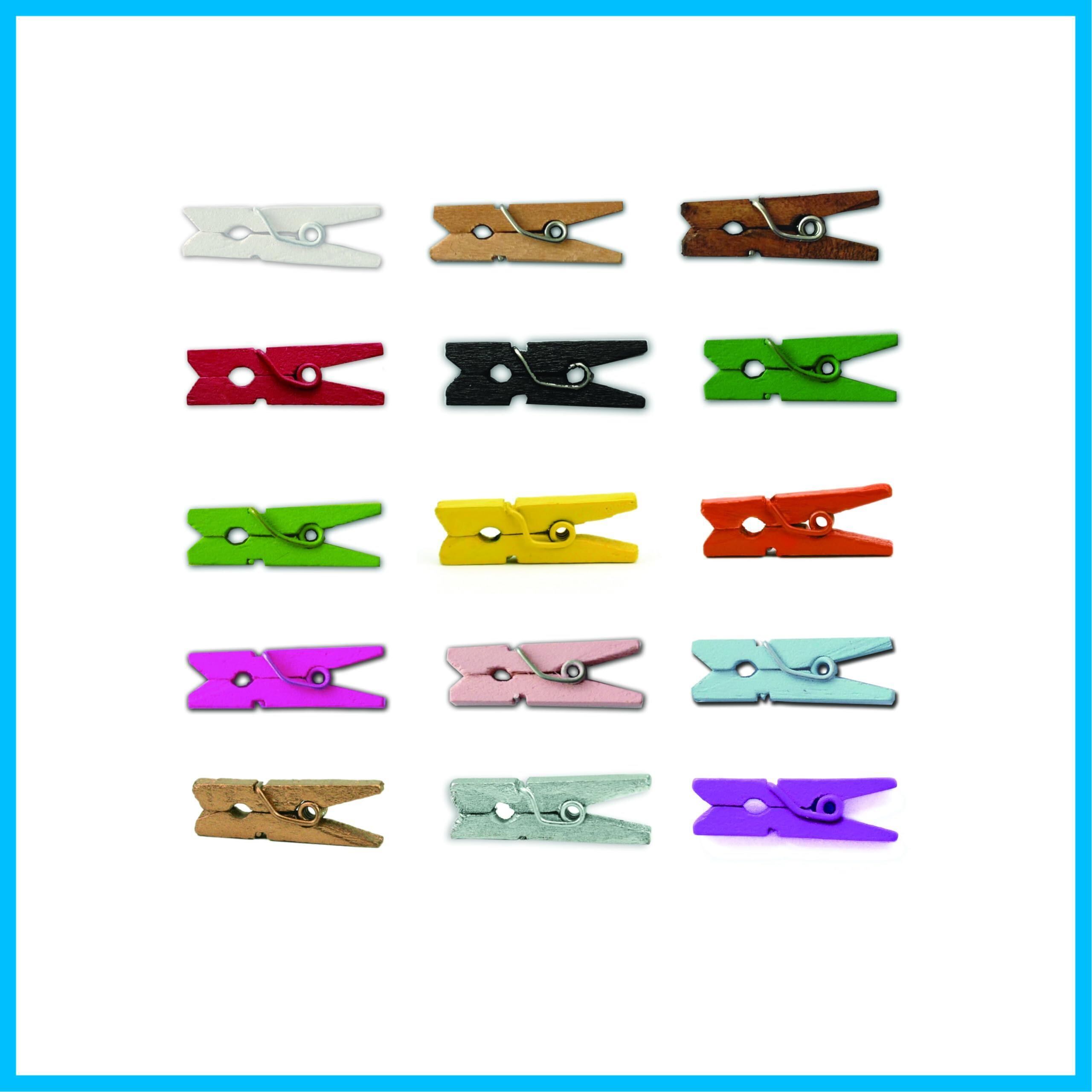 LWR CRAFTS工芸木製ミニ洗濯バサミ、2.5センチメートル長、15色、1パック100個(すべて)