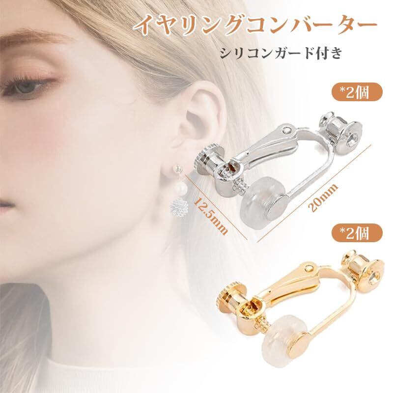 イヤリングコンバーター ピアス イヤリング 変換 2色セット(4個) シルバー ゴールド ネジ式 ピアスをイヤリングに変えるパーツ ノンホールピアス レディース イヤリングパーツ DIY用