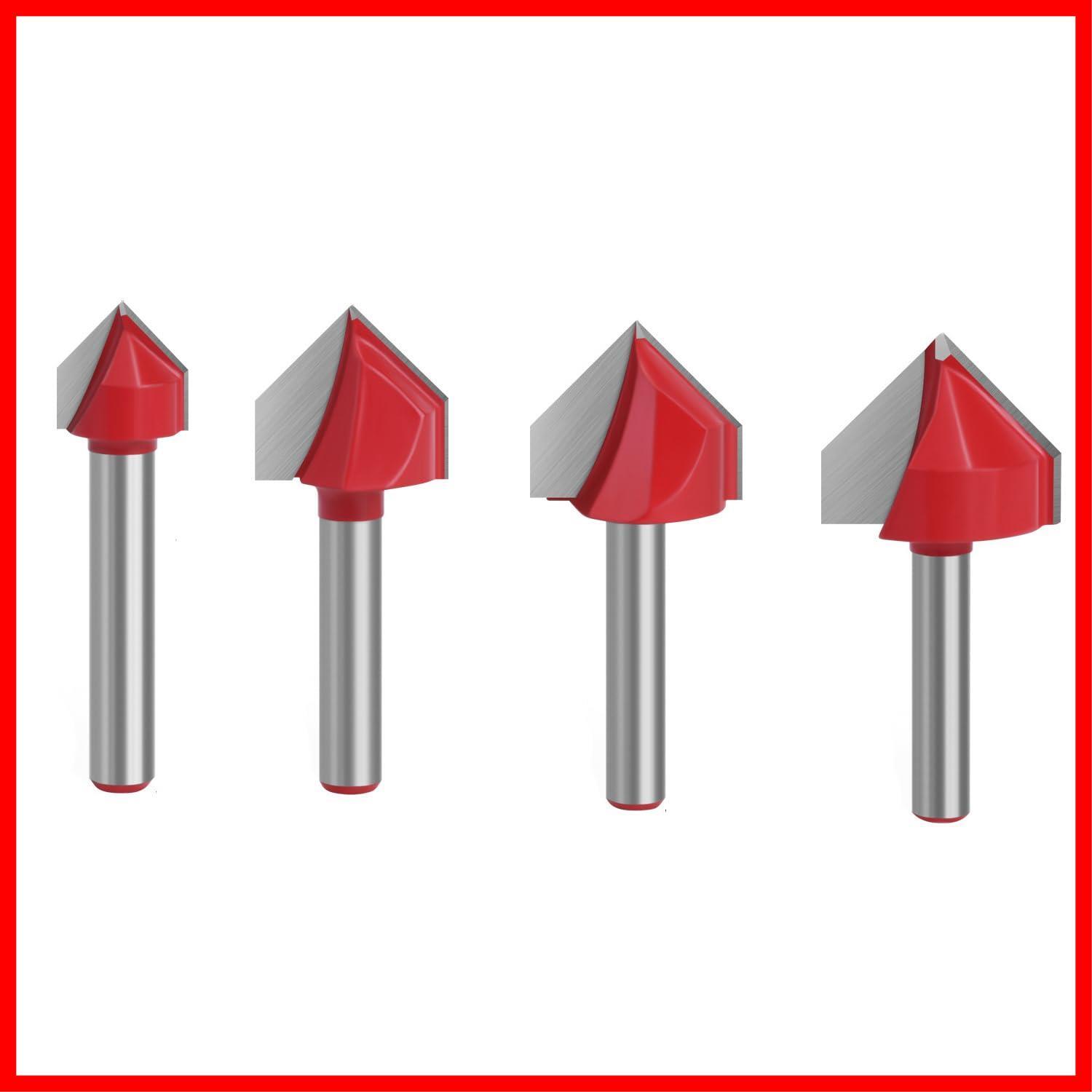 【数量限定】MoToNa 4個セット v溝ルータービット 超硬トリマ CNC彫刻木工V型フライスカッター 彫刻ビット 6.35mmシャンク径 90度タングステン鋼彫刻カッター 切削工具 戸板彫刻 | metta