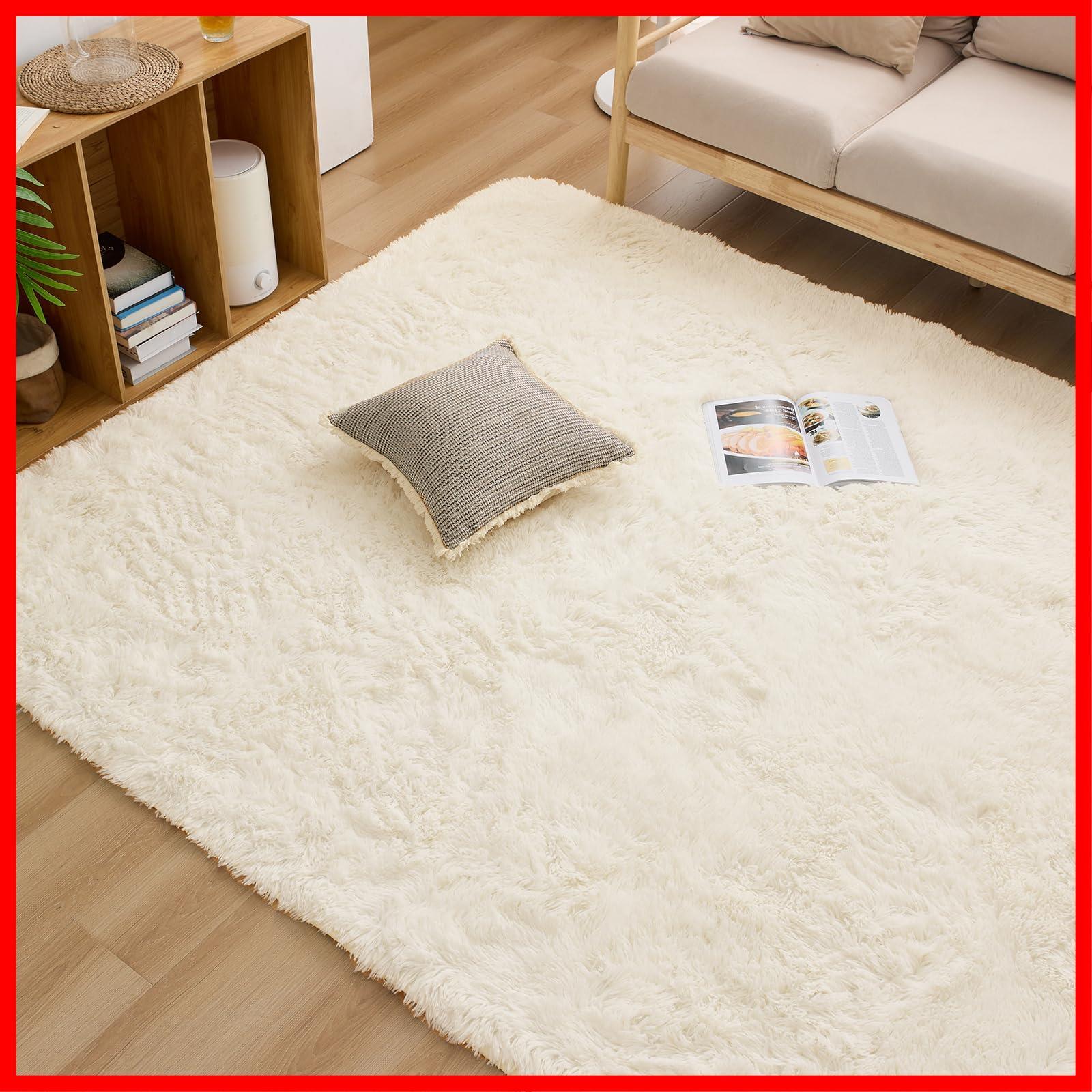 Housecover ラグ カーペット シャギーラグ ラグマット 長方形 絨毯 120x160cm 滑り止め付 洗える 防ダニ 抗菌 防臭 オールシーズン快適に使用 床暖房 ホットカーペット対応 ふわふわ肌触り アイボリー01
