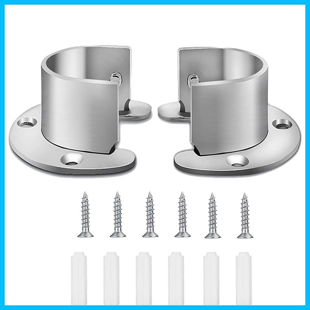 ステンレス鋼 U字型 金具 クローゼットポールソケット ネジ付 クローゼットロッドサポート フランジロッドホルダー クローゼットロッドホルダー シャワーロッド ハンガーポール 2個セット(直径32mmのワードローブロッドに適しています)