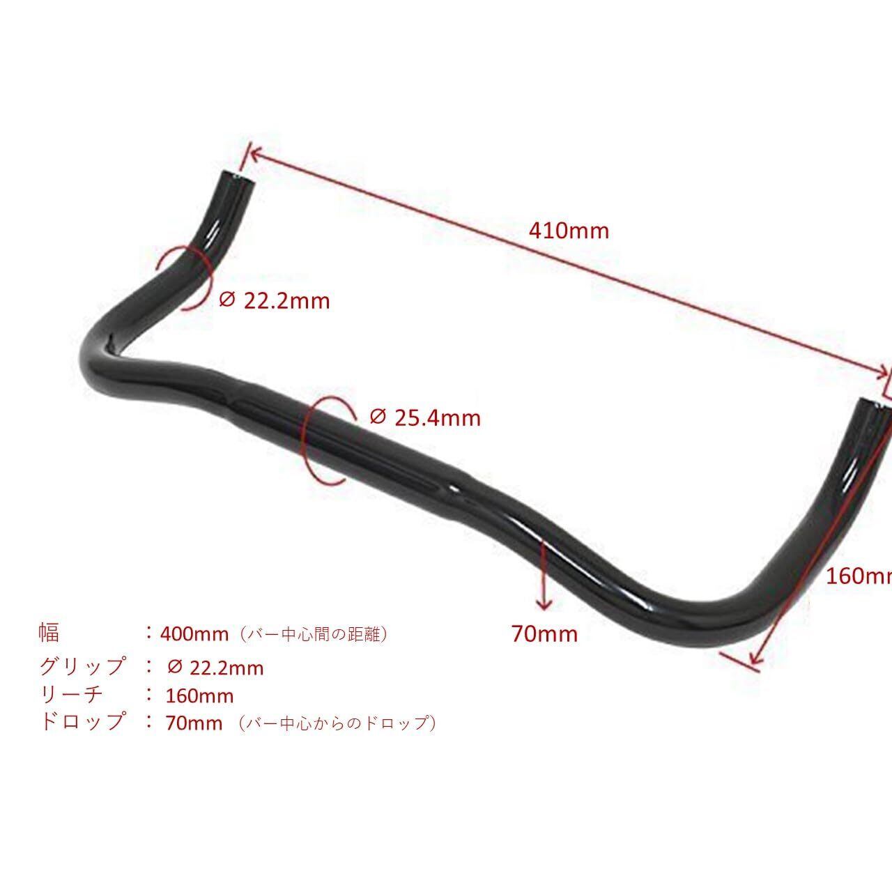 ハンドルサイズ(約):ハンドル幅 400㎜(芯-芯)、バーサイズ(直径) 22.2mm、クランプ径 25.4mm
