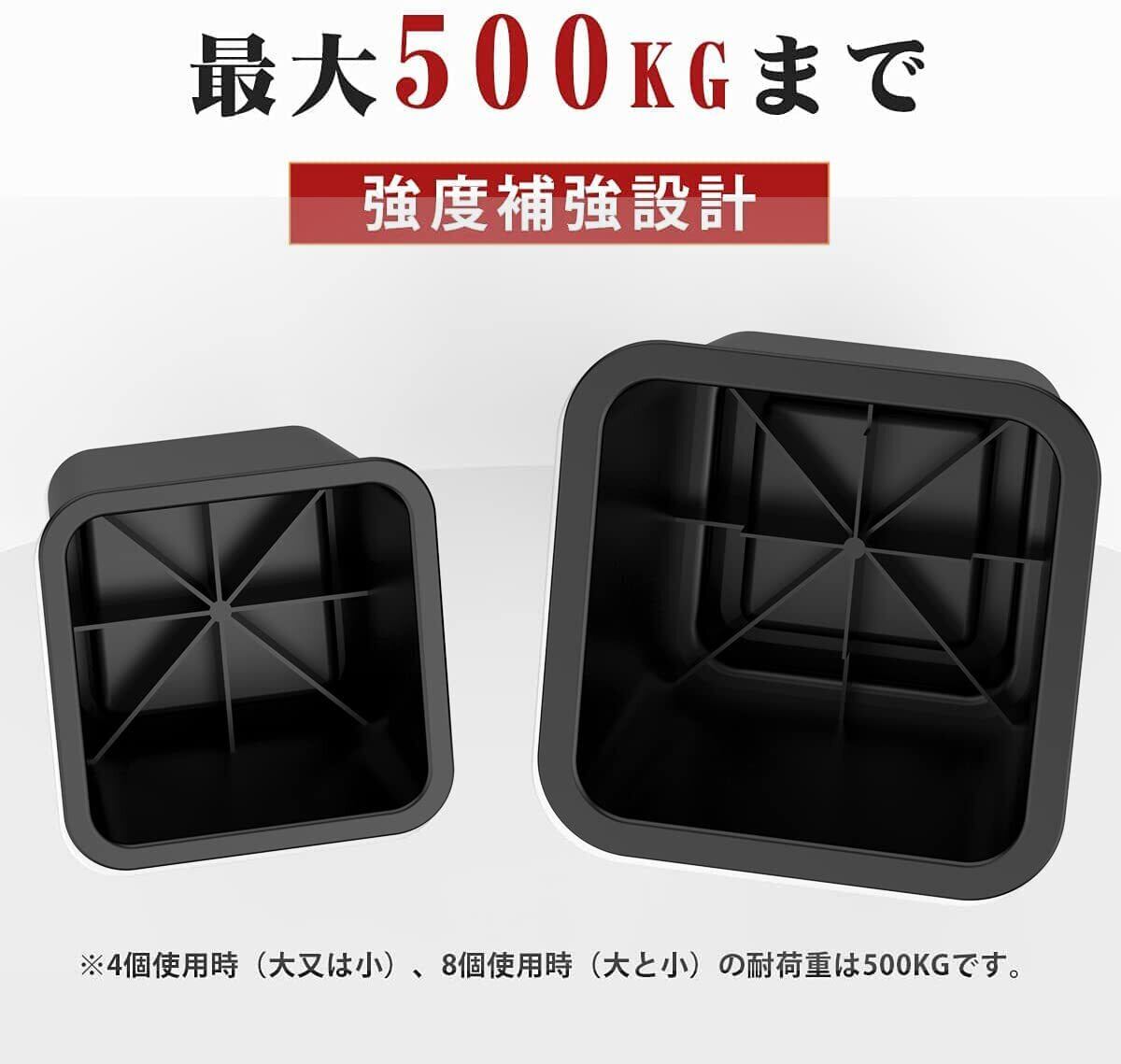 DEWEL 高さ調整 継ぎ脚 かさ上げ テーブル脚 8個セット 洗濯機 台 高さをあげる 机 脚 こたつ テーブル ベッド ソファー 2段 高さ調節 大と小 安定感 耐荷重500kg 正方形 (黒色)