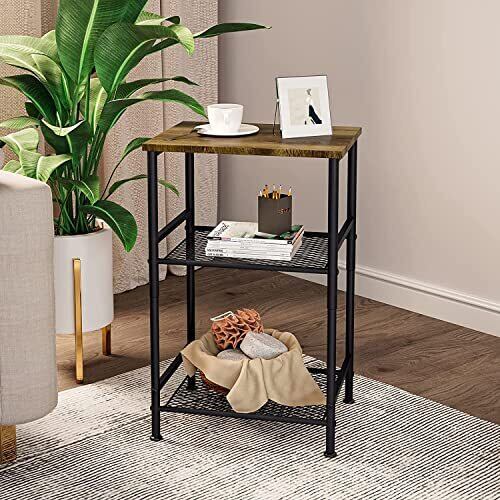 【在庫処分】Forthcan サイドテーブル ミニテーブル ベッドテーブル ナイトテーブル 2段 収納棚 コーヒーテーブル 木目調 おしゃれ 在宅勤務 組み立て簡単 幅40×奥行30×高さ60cm | metta