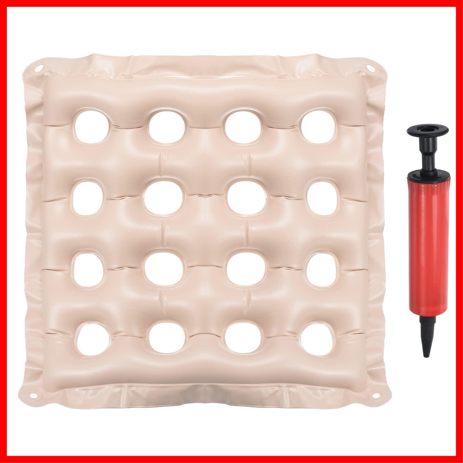 カラー: ベージュ; しぼんだ状態のサイズ: 48 x 48cm (L*W); 膨らんだサイズ: 43 x 43cm(L*W); パッケージ: 1 x シートクッション, 1 x エアポンプ (レッド)