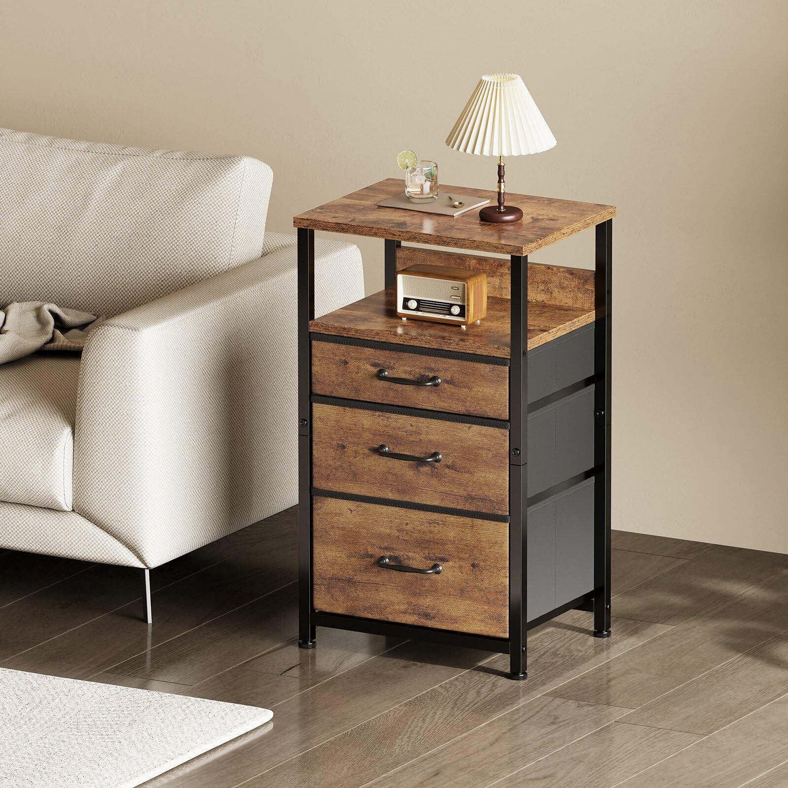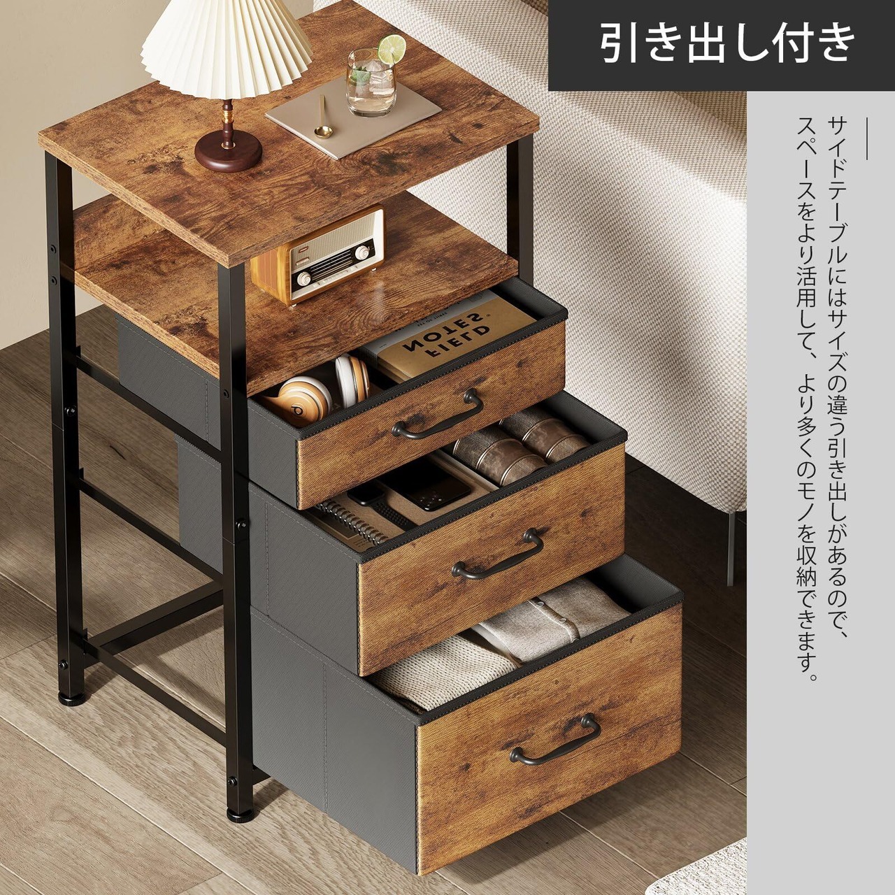 【在庫処分】YeTom サイドテーブル サイドチェスト 洋服タンス 収納チェスト サイドチェスト 40*30*68.5cm 3つ引き出し付き 寝室 ナイトテーブル 北欧 4段 おしゃれ ベッド ソファ 天板付き 収納付きテーブル スリム シンプル ピンテージ | metta