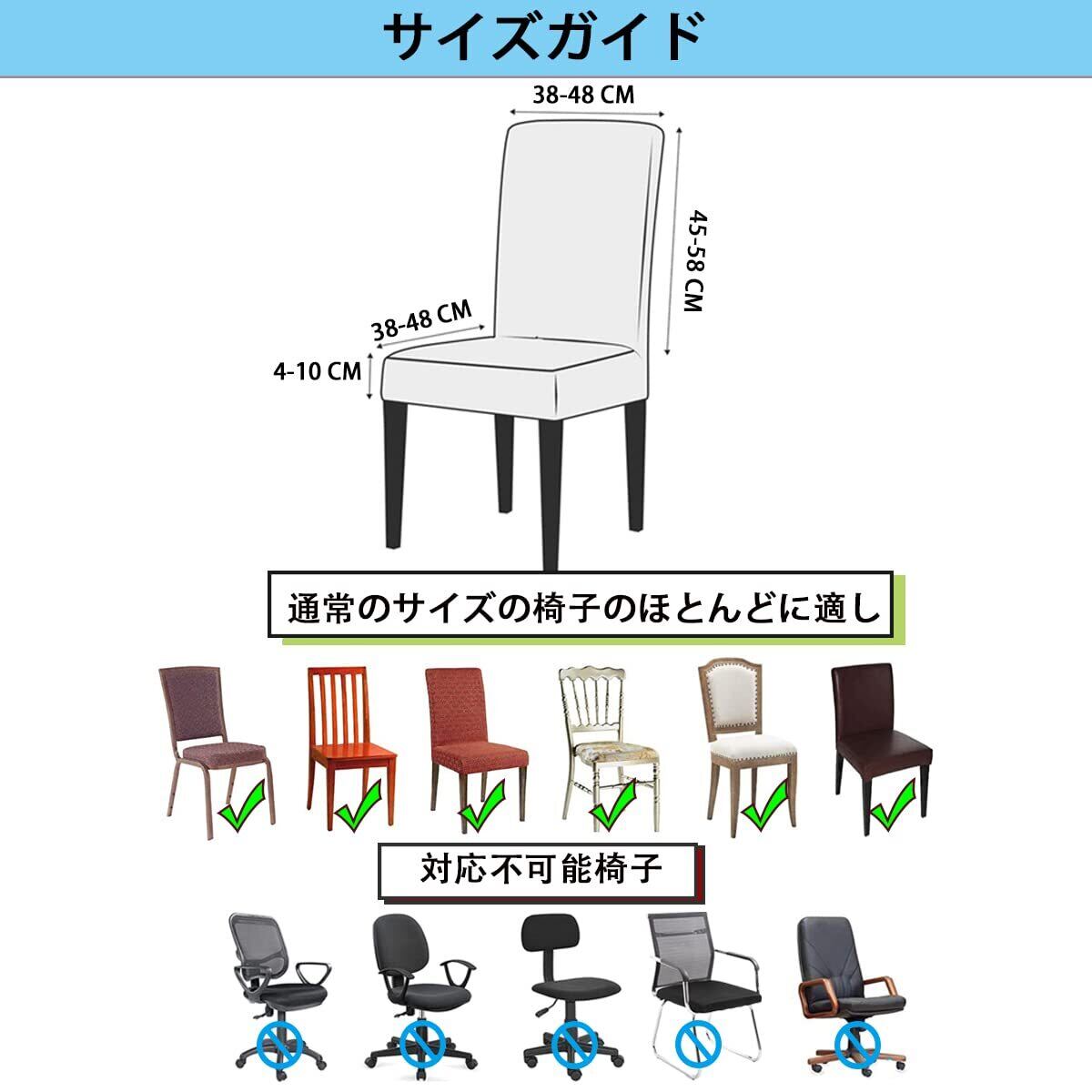 【適用サイズ】: 背もたれ高さ:45~58cm、座面長さと幅:36~48cm、座面厚さ:4~10cm;ハイバックチェアに適用です。