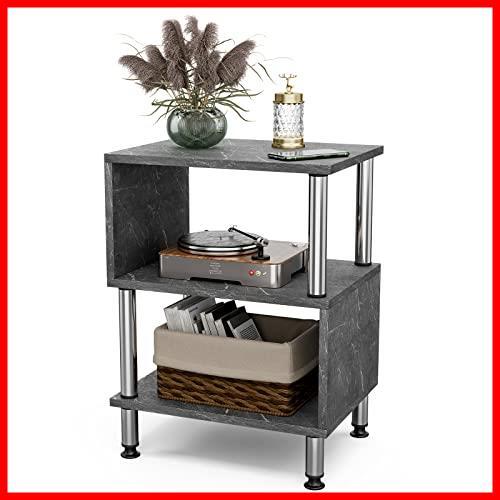 FryLR サイドテーブル おしゃれ S字ラック 40*29*51cm 木目調 大理石柄 オープンラック エンドテーブル 寝室 ソファ ベッド横 ジグザグラック 見せる収納 サイドラック 3段 収納棚(ブラック大理石柄)