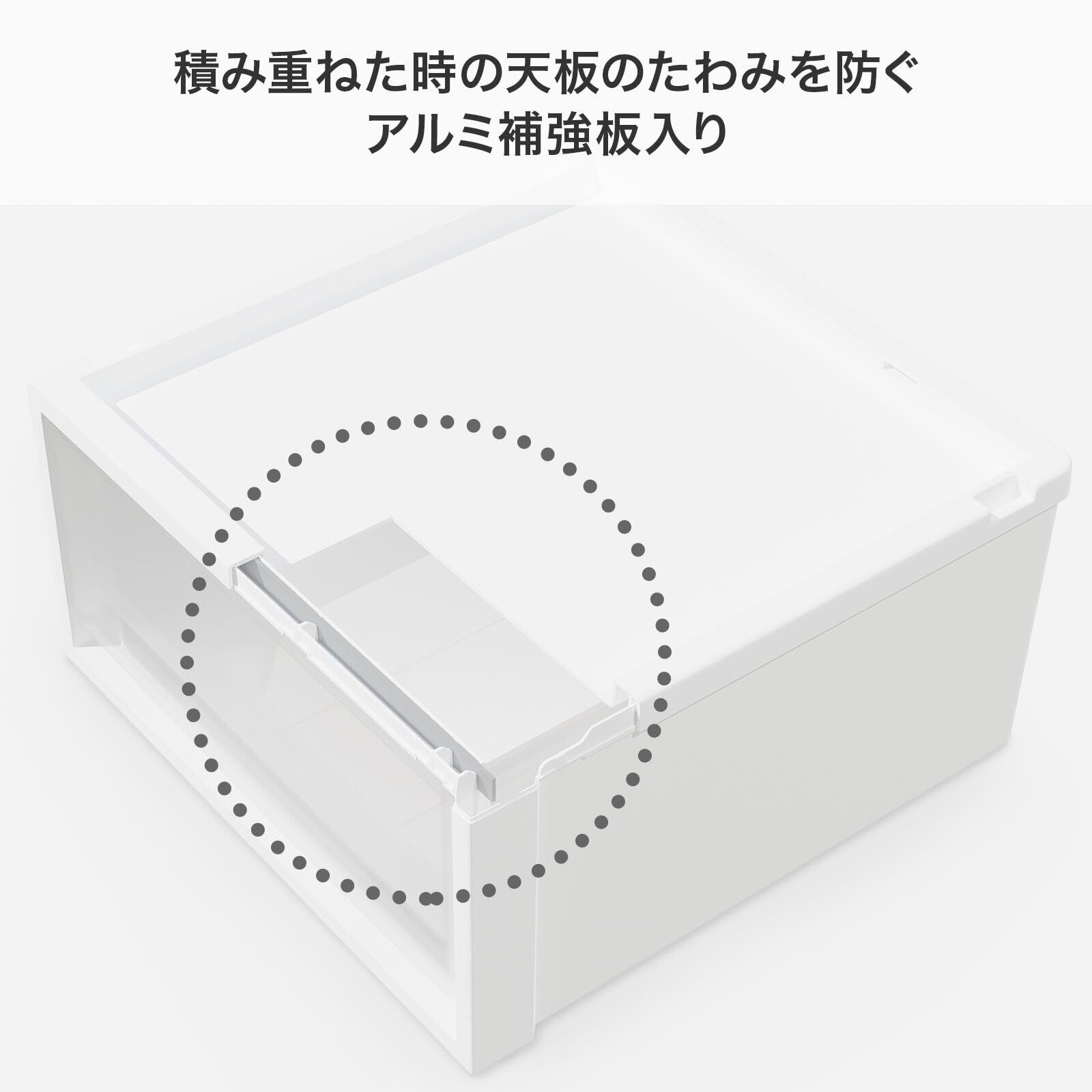 天馬の「フィッツケースFC40」がリフレッシュ!爽やかなホワイトクリアカラーでTSPP対応商品で再生ポリプロピレンを使用しています。”収納場所”ではなく、”収納する物”から設計したサイズ設計で、キッチンやランドリールームなどの省スペースにも最適な奥行40cmの収納ケース。シンプルなデザインなのでどんなテイストお部屋にも合いやすく、インテリア性を重視いたしました。天板のたわみを防ぐために前枠にアルミ補強板を内蔵し、頑丈に補強することで、より長くご愛用いただけるようにいたしました。ポイント、使いやすさは「FC40」をそのまま継承。別売の『差込式キャスター40』が取り付けられます。