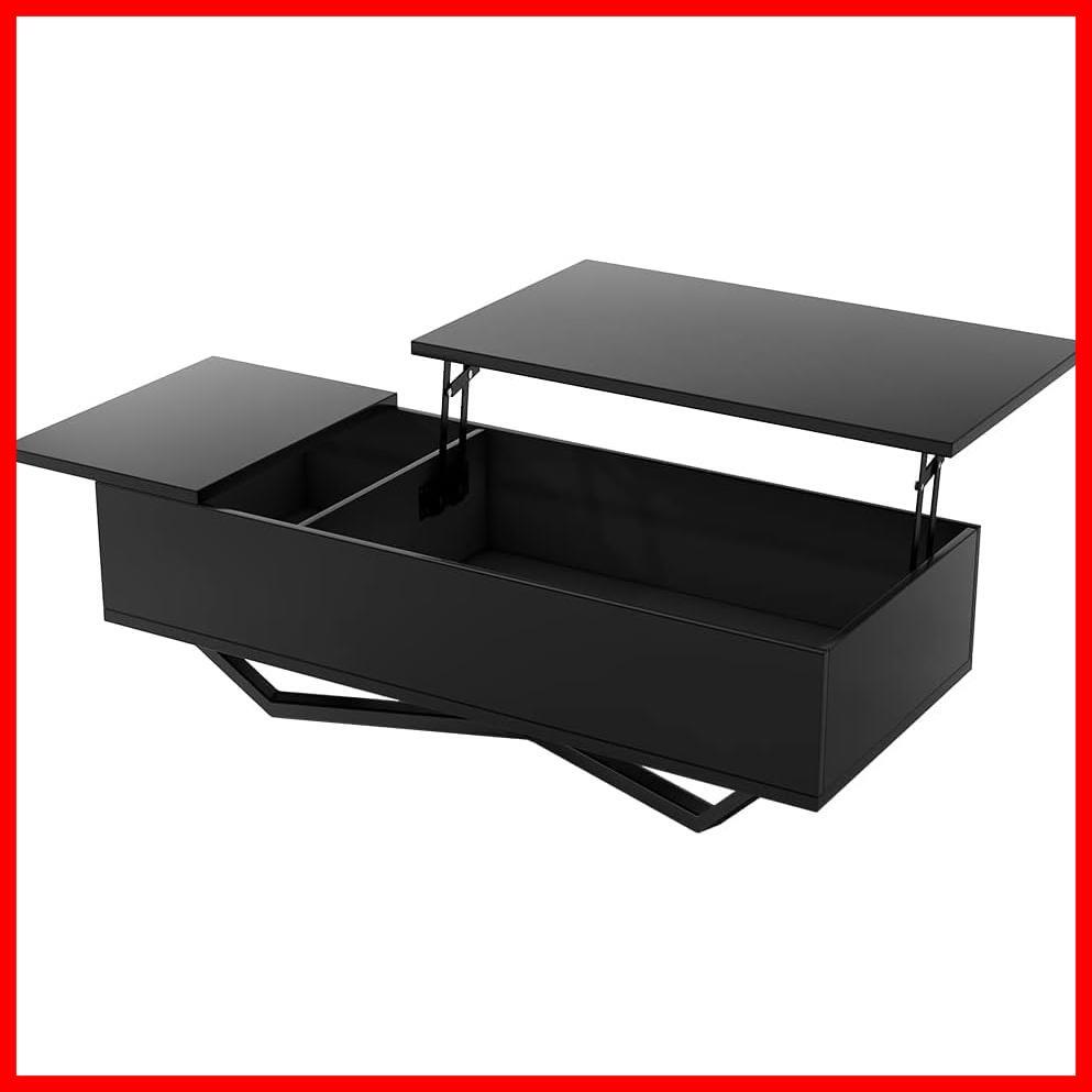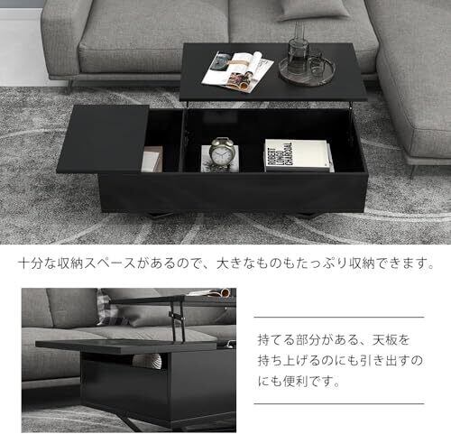 たっぷり収納:天板が左右に分かれて昇降とスライドする便利な機能付きセンターテーブル