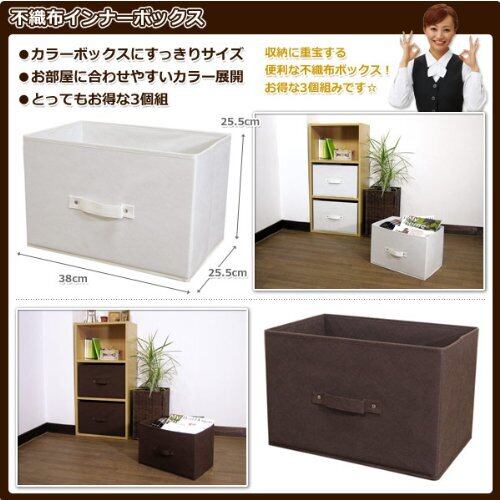 東洋ケース インナーボックス (3個組) 不織布 カラーボックス対応 よこ型 幅38×奥行25cm ナチュラル FIB-3P-NA