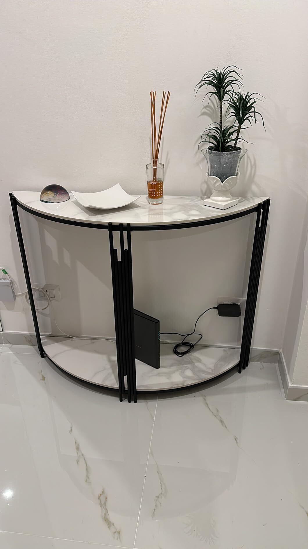 コンソールテーブル 大理石 玄関テーブル 半円 2段 奥行き30 ホワイト モダン リビング 飾り棚