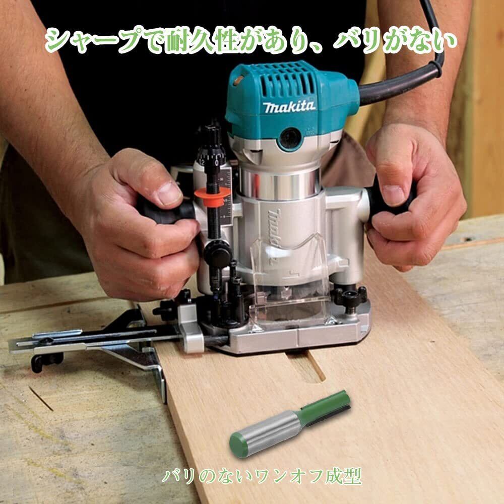 超硬ビット ルータービット トリマービット 舌・溝カッター シングル/ダブルフルートビット 切削工具 産業用カッター 木工用工具 ストレートカッター タングステンスチール 6mmシャフト 7本セット グリーン