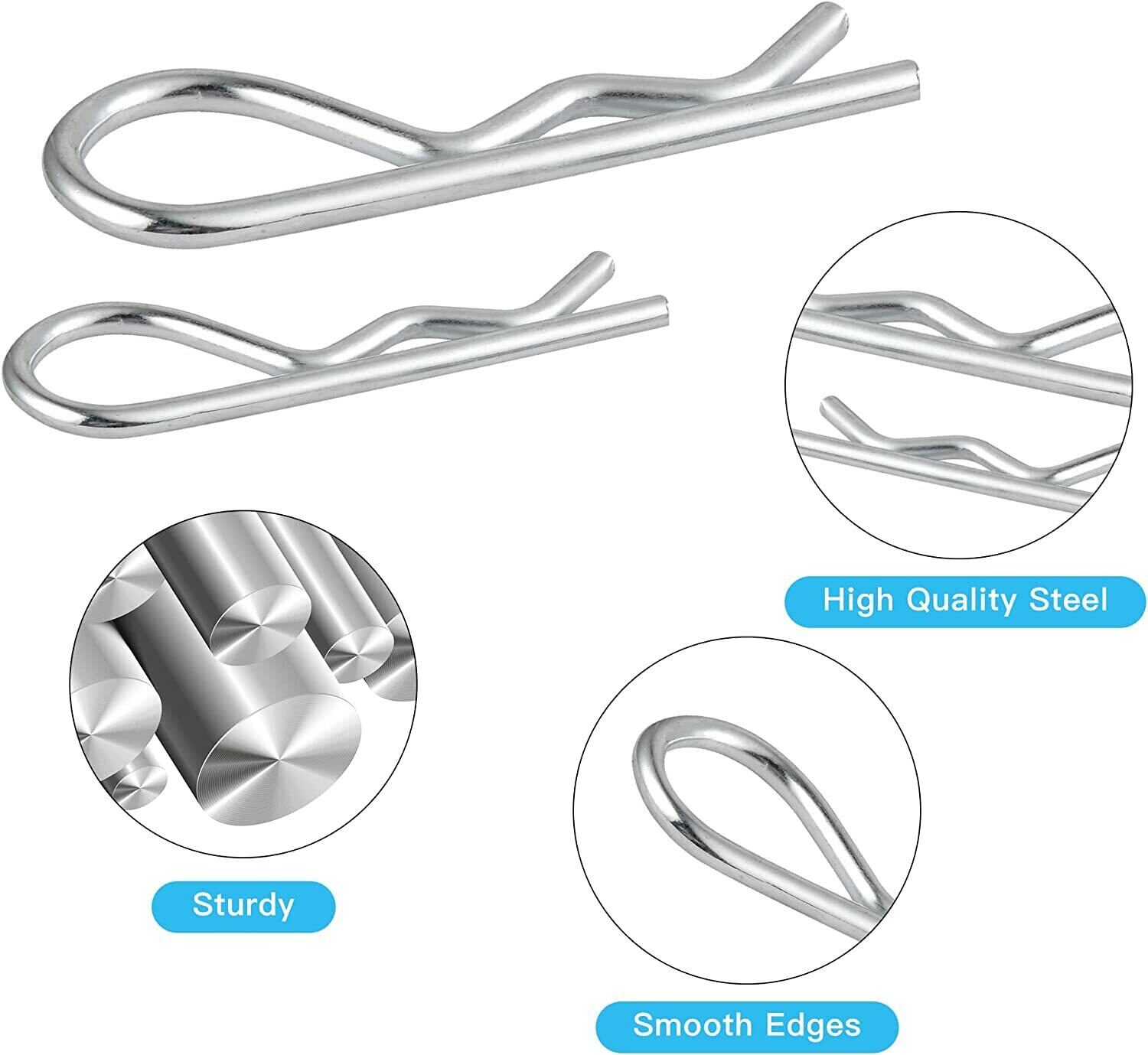 【セット内容】コッターピンの品揃えには、6種類一般的に使用されるサイズのコッターピンとヘアピンが含まれております。合わせて150個のRクリップファスナーを透明ボックスに梱包され、便利に素早くアクセスできます。