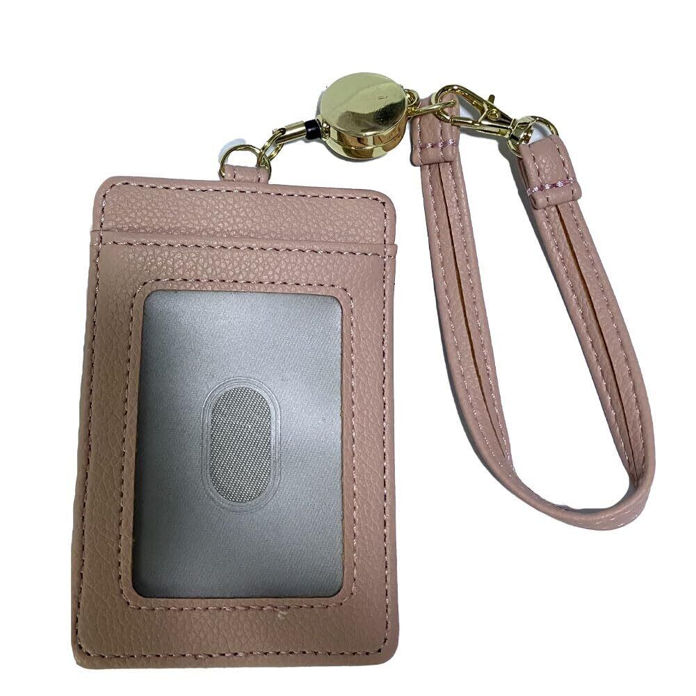 Jewel Beauty's Select パスケース リール付き 全24色 男女兼用 カードホルダー 定期入れ 伸縮 リール リボン ストラップ付き IDケース ID カードケース 学生証 社員証 IDカードホルダー (チャームなしシボピンク)