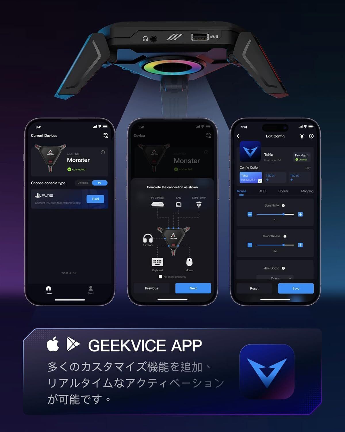 AIMZENIX MONSTER コンバーター PS5対応 N-SWITCH 2対応 キーボードとマウスアダプタスマートマッピング スマート・アンリコマクロ アンチリコイル 連射マクロ搭載 N-Switch/Xbox Series X/S/Xbox ONE/Xbox 360/PS4/PC対応 MONSTER 日本語説明書付き/日本語版アプリ 3.5mmヘッドホンオーディオをサポートしています